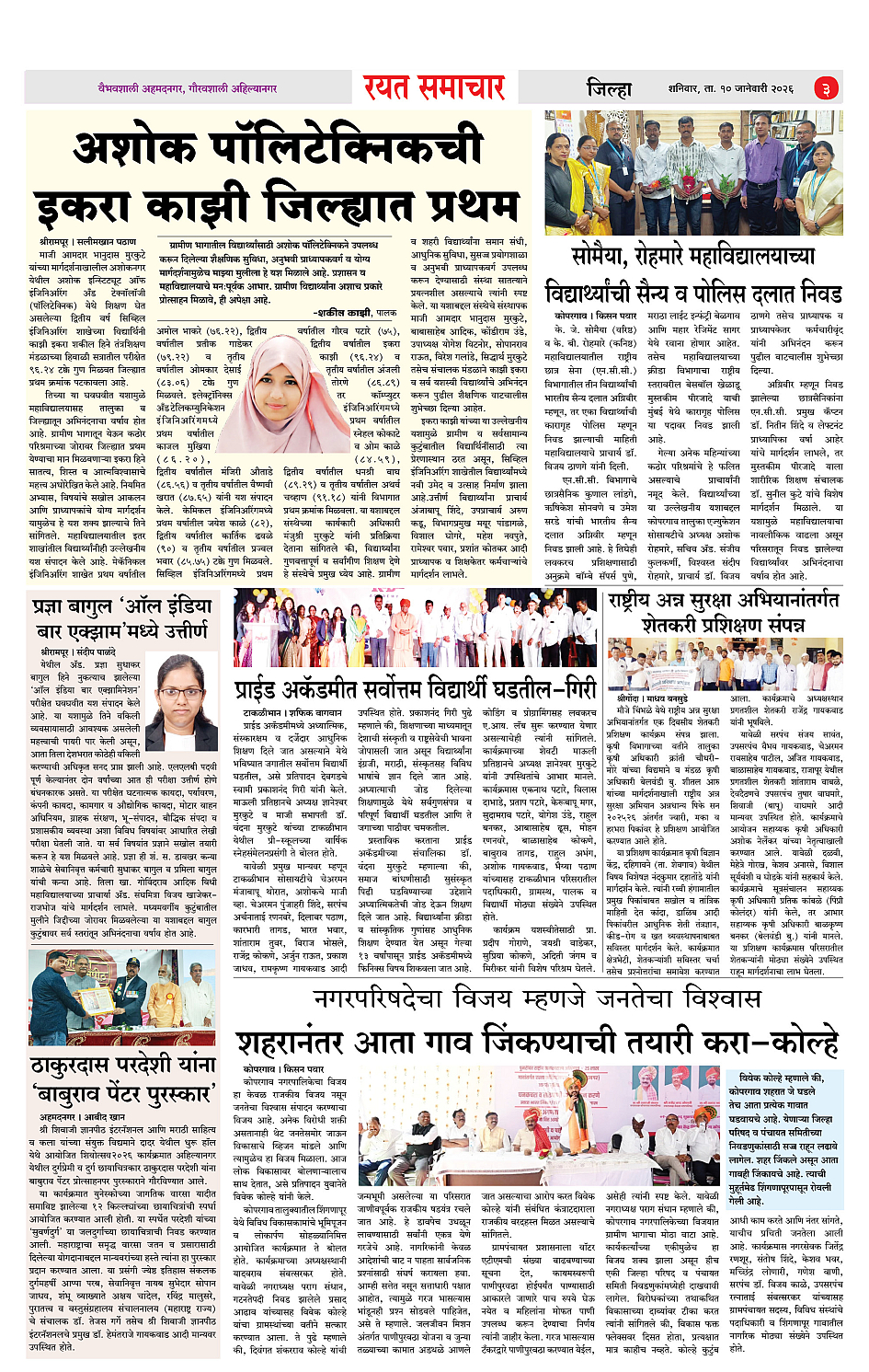 RSE: आजचा रयत समाचार वाचा 10 Jan 2026 मनोरंजनासह प्रबोधनासाठी... Page: 3 January 10, 2026 << First << 1 2 3 4 >> Last >> Page 1Page 2Page 3Page 4 × RSE: आजचा रयत समाचार वाचा 10 Jan 2026 मनोरंजनासह प्रबोधनासाठी... 1_Main_Page2_CITY_PAGE3_DISTRICT_PAGE4_MAHARSHTRA_PAGE Full PDF << First << 3 >> Last >> 1_Main_Page2_CITY_PAGE3_DISTRICT_PAGE4_MAHARSHTRA_PAGE