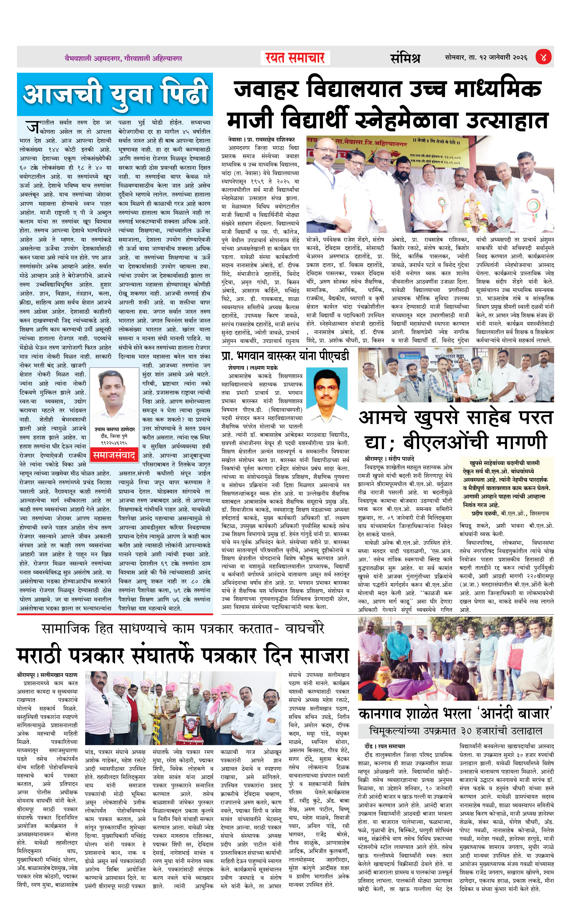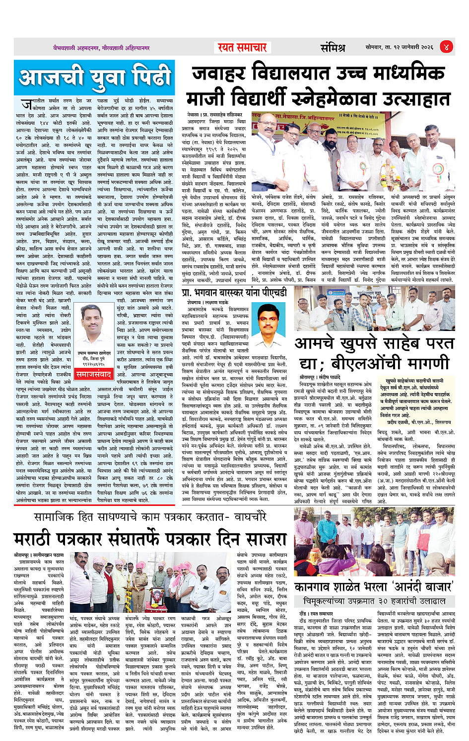 RSE: आजचा रयत समाचार वाचा 12 Jan 2026 मनोरंजनासह प्रबोधनासाठी...राजमाता जिजाऊ जयंतीच्या हार्दिक शुभेच्छा Page: 4 January 12, 2026 << First << 1 2 3 4 >> Last >> Page 1Page 2Page 3Page 4 × RSE: आजचा रयत समाचार वाचा 12 Jan 2026 मनोरंजनासह प्रबोधनासाठी...राजमाता जिजाऊ जयंतीच्या हार्दिक शुभेच्छा 1_MAIN PAGE2_CITY PAGE3_DISTRICT_PAGE4_MAHARSHTRA_PAGE Full PDF << First << 4 >> Last >> 1_MAIN PAGE2_CITY PAGE3_DISTRICT_PAGE4_MAHARSHTRA_PAGE