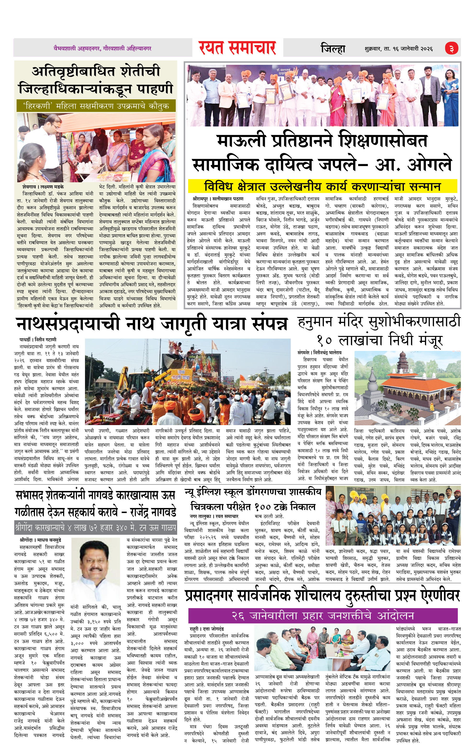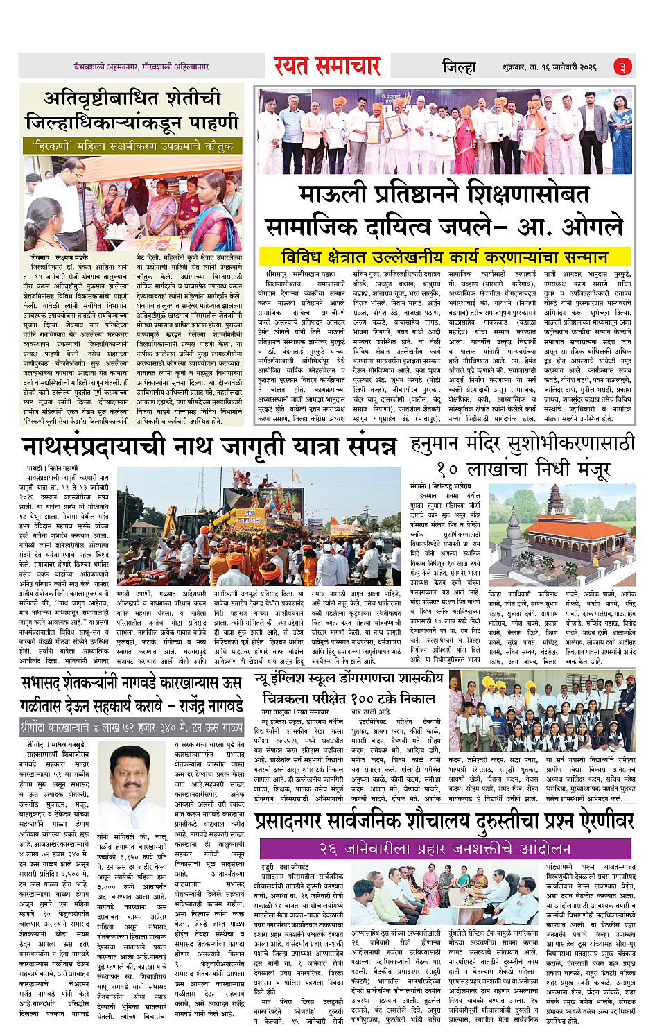 RSE: आजचा रयत समाचार वाचा 16 Jan 2026 मनोरंजनासह प्रबोधनासाठी... Page: 3 January 16, 2026 << First << 1 2 3 4 >> Last >> Page 1Page 2Page 3Page 4 × RSE: आजचा रयत समाचार वाचा 16 Jan 2026 मनोरंजनासह प्रबोधनासाठी... 1_MAIN PAGE2_CITY PAGE3_DISTRICT_PAGE4_MAHARSHTRA_PAGE Full PDF << First << 3 >> Last >> 1_MAIN PAGE2_CITY PAGE3_DISTRICT_PAGE4_MAHARSHTRA_PAGE