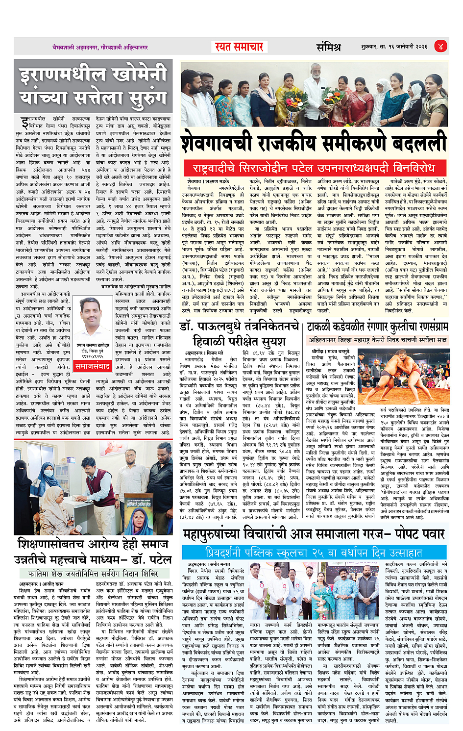 RSE: आजचा रयत समाचार वाचा 16 Jan 2026 मनोरंजनासह प्रबोधनासाठी... Page: 4 January 16, 2026 << First << 1 2 3 4 >> Last >> Page 1Page 2Page 3Page 4 × RSE: आजचा रयत समाचार वाचा 16 Jan 2026 मनोरंजनासह प्रबोधनासाठी... 1_MAIN PAGE2_CITY PAGE3_DISTRICT_PAGE4_MAHARSHTRA_PAGE Full PDF << First << 4 >> Last >> 1_MAIN PAGE2_CITY PAGE3_DISTRICT_PAGE4_MAHARSHTRA_PAGE