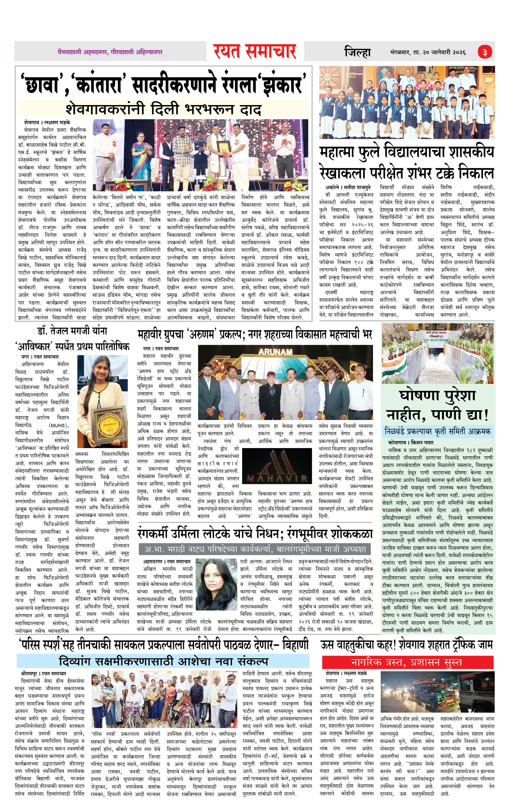 RSE: आजचा रयत समाचार वाचा 20 Jan 2026 मनोरंजनासह प्रबोधनासाठी... Page: 3 January 20, 2026 << First << 1 2 3 4 >> Last >> Page 1Page 2Page 3Page 4 × RSE: आजचा रयत समाचार वाचा 20 Jan 2026 मनोरंजनासह प्रबोधनासाठी... Main_Page_1City_Page_2District_Page_3Maharashtra_Page_4 << First << 3 >> Last >> Main_Page_1City_Page_2District_Page_3Maharashtra_Page_4
