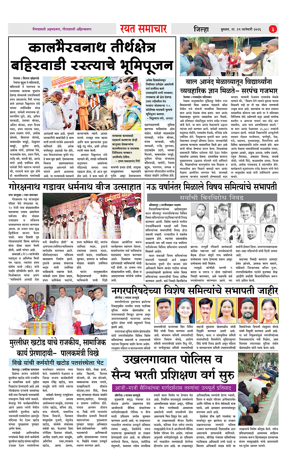 RSE: आजचा रयत समाचार वाचा 21 Jan 2026 मनोरंजनासह प्रबोधनासाठी... Page: 3 January 21, 2026 << First << 1 2 3 4 >> Last >> Page 1Page 2Page 3Page 4 × RSE: आजचा रयत समाचार वाचा 21 Jan 2026 मनोरंजनासह प्रबोधनासाठी... 1_MAIN PAGE2_CITY PAGE3_DISTRICT_PAGE4_MAHARSHTRA_PAGE Full PDF << First << 3 >> Last >> 1_MAIN PAGE2_CITY PAGE3_DISTRICT_PAGE4_MAHARSHTRA_PAGE