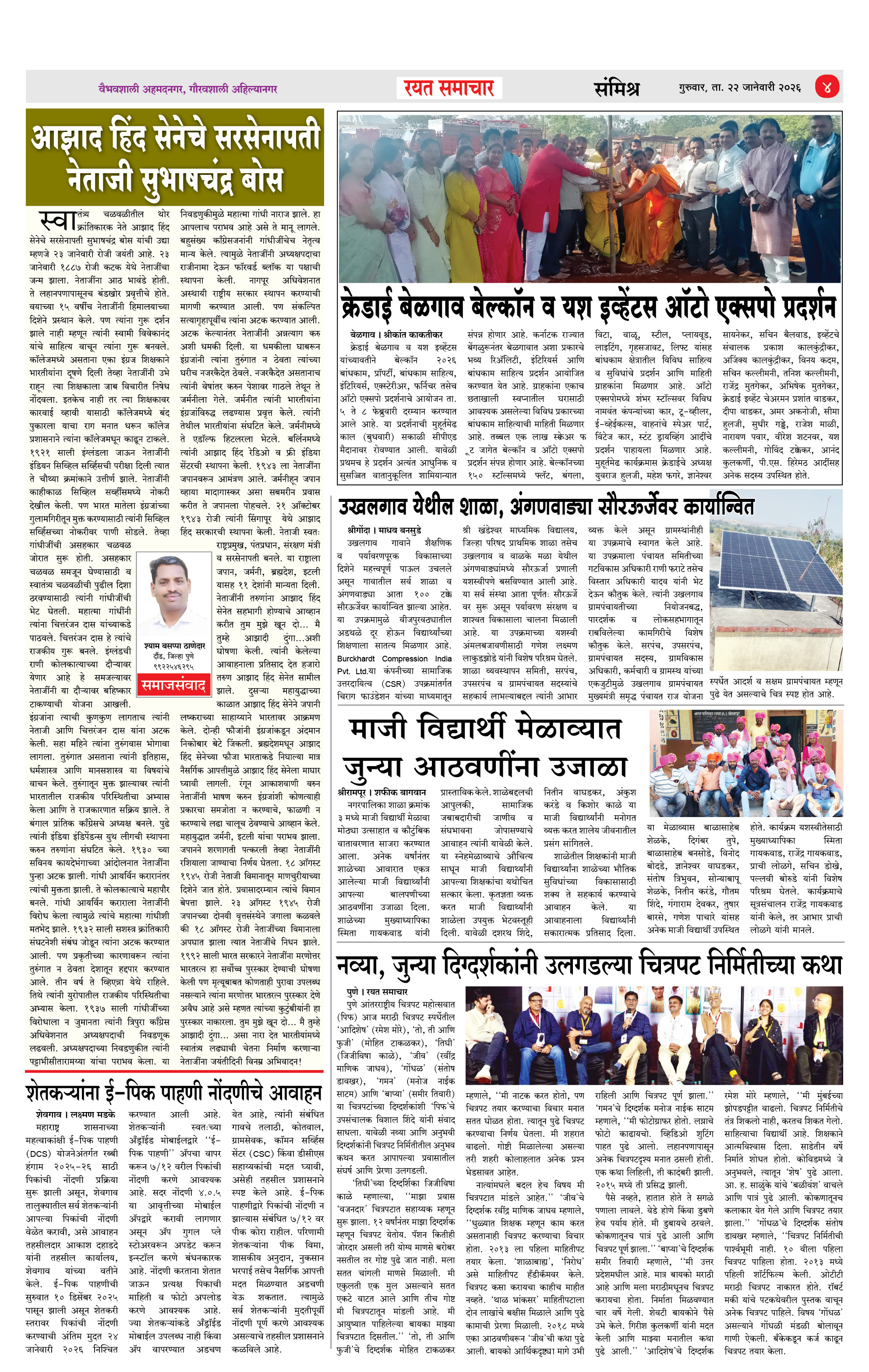 RSE: आजचा रयत समाचार वाचा 22 Jan 2026 मनोरंजनासह प्रबोधनासाठी... Page: 4 January 22, 2026 << First << 1 2 3 4 >> Last >> Page 1Page 2Page 3Page 4 × RSE: आजचा रयत समाचार वाचा 22 Jan 2026 मनोरंजनासह प्रबोधनासाठी... 1_MAIN PAGE2_CITY PAGE3_DISTRICT_PAGE4_MAHARSHTRA_PAGE Full PDF << First << 4 >> Last >> 1_MAIN PAGE2_CITY PAGE3_DISTRICT_PAGE4_MAHARSHTRA_PAGE