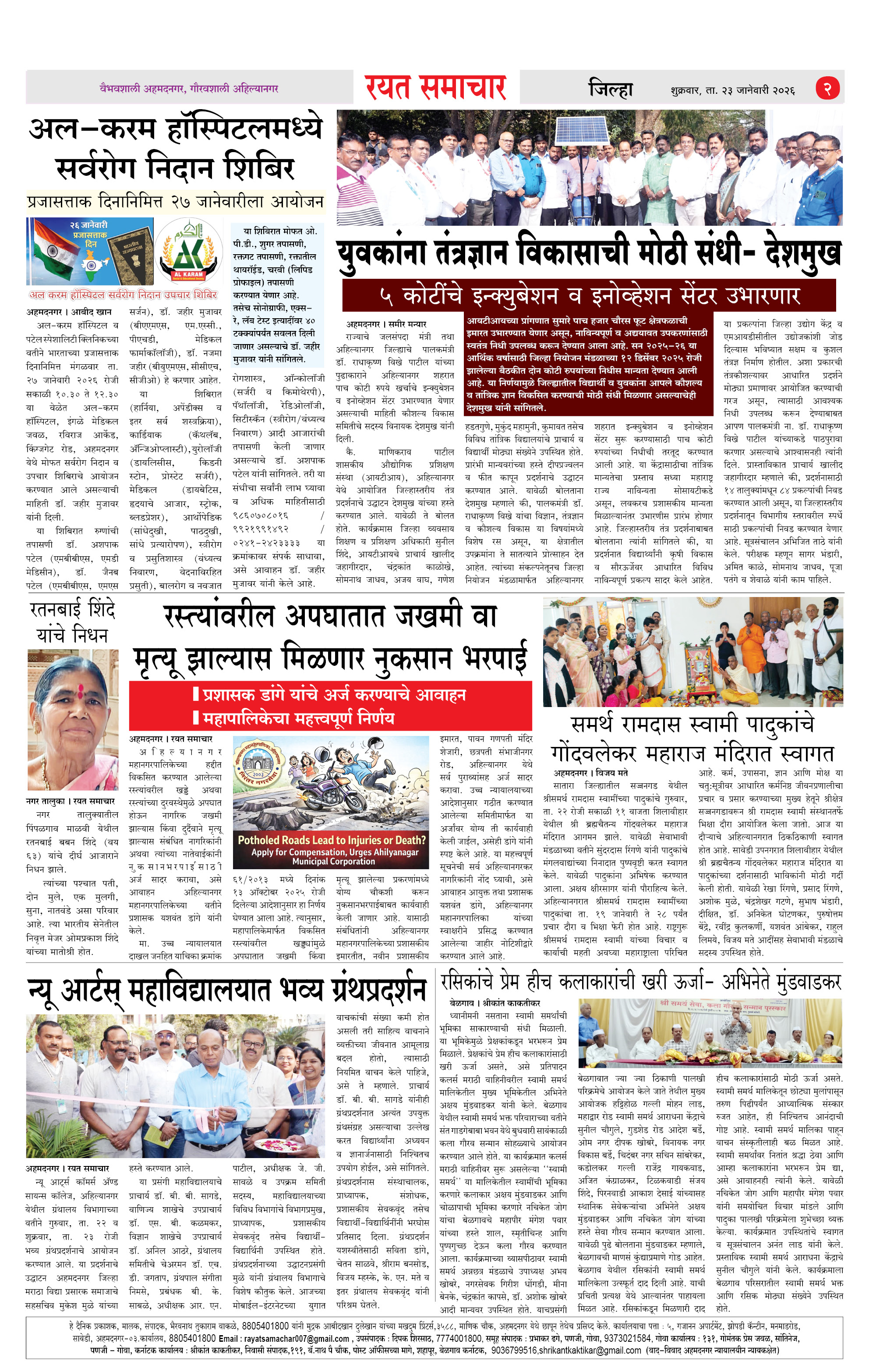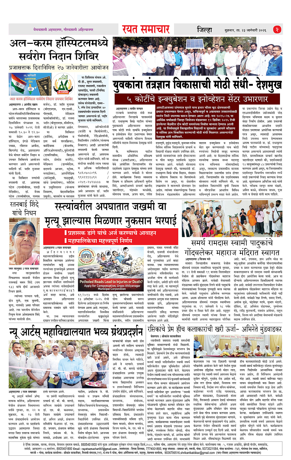 RSE: आजचा रयत समाचार वाचा 23 Jan 2026 मनोरंजनासह प्रबोधनासाठी... Page: 2 January 23, 2026 << First << 1 2 3 4 >> Last >> Page 1Page 2Page 3Page 4 × RSE: आजचा रयत समाचार वाचा 23 Jan 2026 मनोरंजनासह प्रबोधनासाठी... 1_MAIN PAGE2_CITY PAGE3_DISTRICT_PAGE4_MAHARSHTRA_PAGE Full PDF << First << 2 >> Last >> 1_MAIN PAGE2_CITY PAGE3_DISTRICT_PAGE4_MAHARSHTRA_PAGE