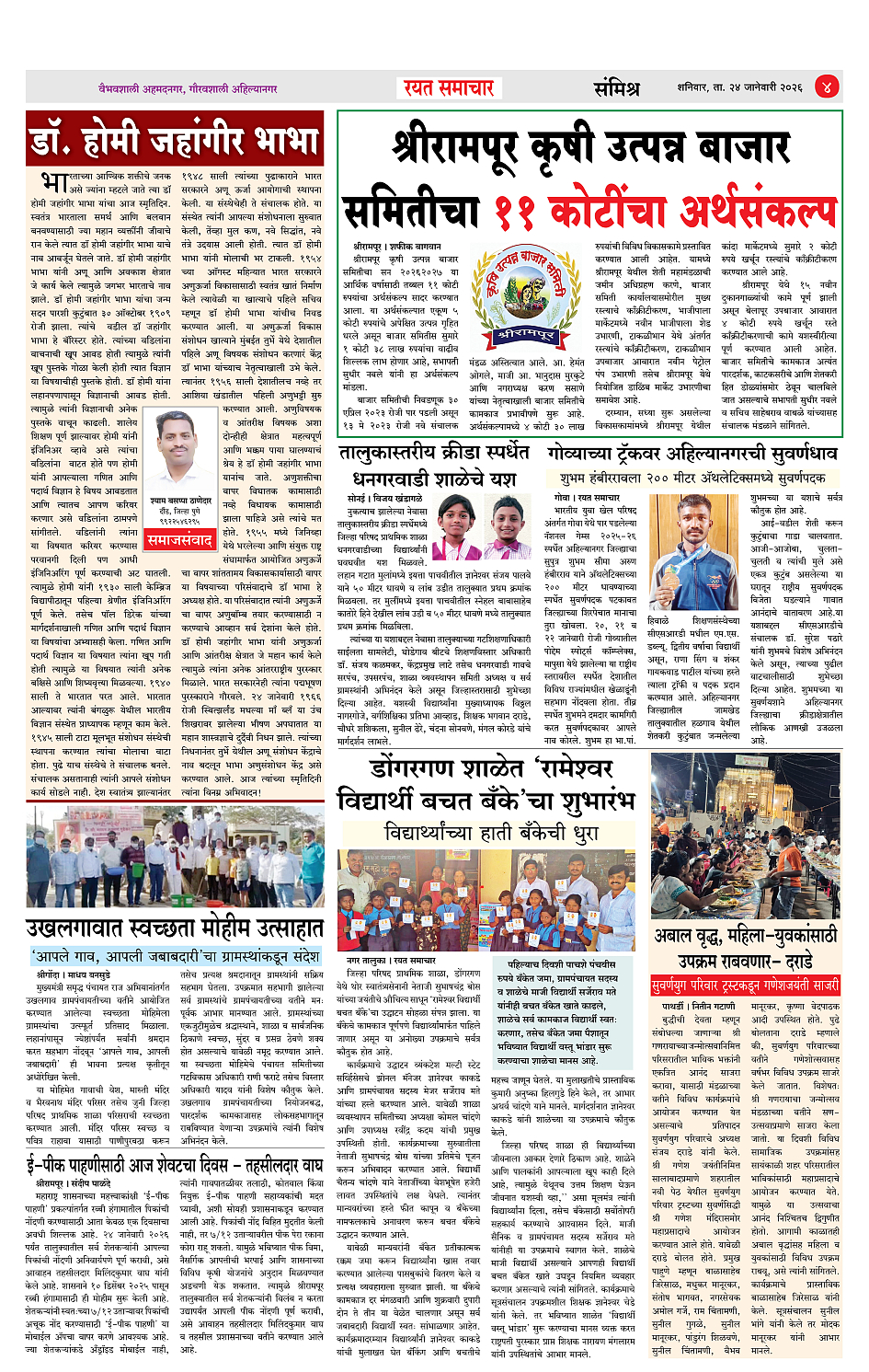 RSE: आजचा रयत समाचार वाचा 24 Jan 2026 मनोरंजनासह प्रबोधनासाठी... Page: 4 January 24, 2026 << First << 1 2 3 4 >> Last >> Page 1Page 2Page 3Page 4 × RSE: आजचा रयत समाचार वाचा 24 Jan 2026 मनोरंजनासह प्रबोधनासाठी... 1_MAIN PAGE2_CITY PAGE3_DISTRICT_PAGE4_MAHARSHTRA_PAGE Full PDF << First << 4 >> Last >> 1_MAIN PAGE2_CITY PAGE3_DISTRICT_PAGE4_MAHARSHTRA_PAGE