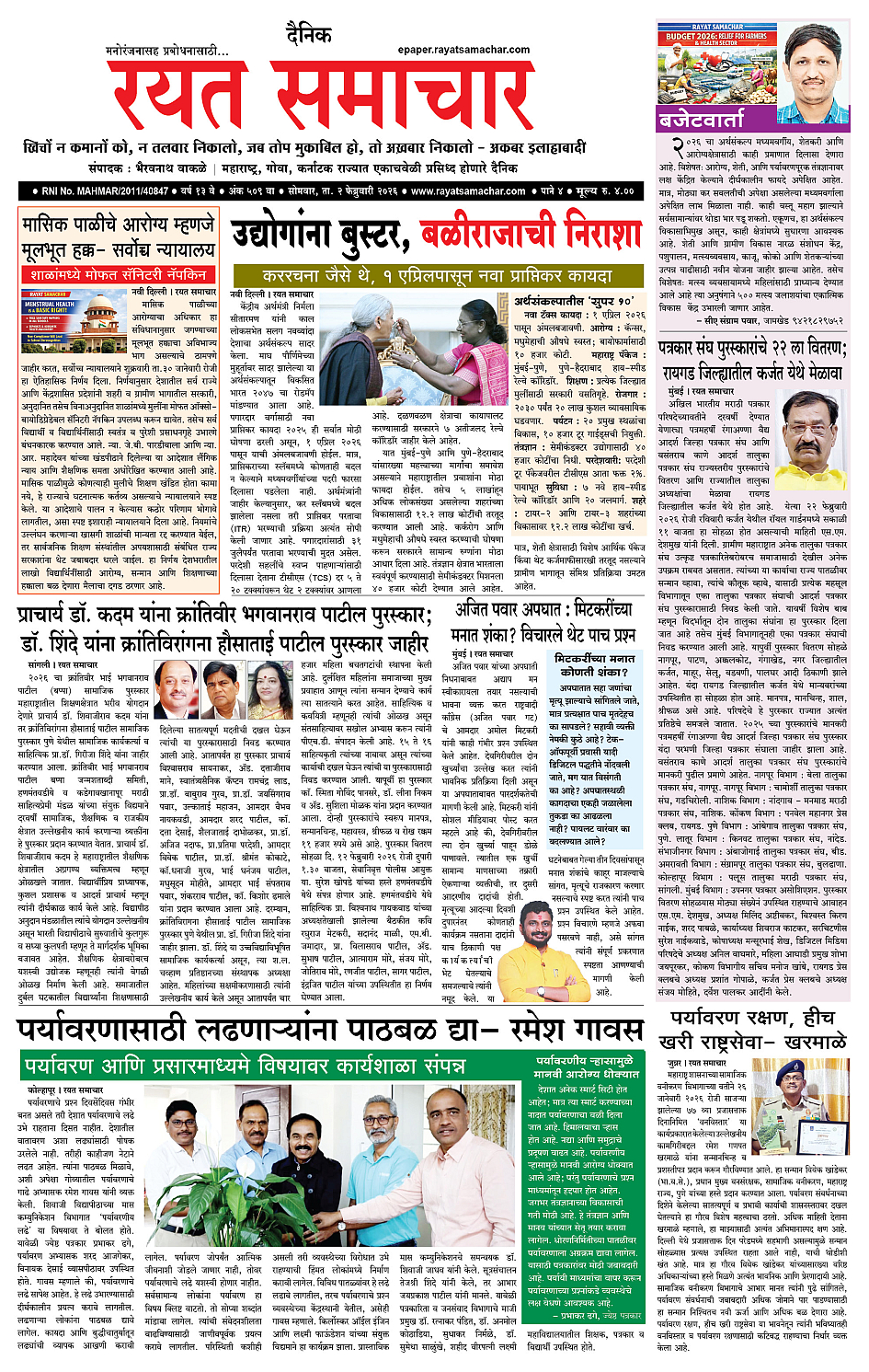 RSE: आजचा रयत समाचार वाचा 02 Feb 2026 मनोरंजनासह प्रबोधनासाठी... February 02, 2026 << First << 1 2 3 4 >> Last >> Page 1Page 2Page 3Page 4 × RSE: आजचा रयत समाचार वाचा 02 Feb 2026 मनोरंजनासह प्रबोधनासाठी... 1_MAIN PAGE2_CITY PAGE3_DISTRICT_PAGE4_MAHARSHTRA_PAGE << First << 1 >> Last >> 1_MAIN PAGE2_CITY PAGE3_DISTRICT_PAGE4_MAHARSHTRA_PAGE