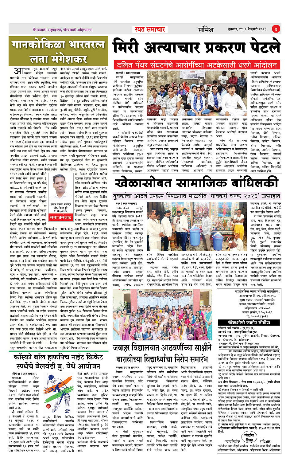 RSE: आजचा रयत समाचार वाचा 06 Feb 2026 मनोरंजनासह प्रबोधनासाठी... Page: 4 February 06, 2026 << First << 1 2 3 4 >> Last >> Page 1Page 2Page 3Page 4 × RSE: आजचा रयत समाचार वाचा 06 Feb 2026 मनोरंजनासह प्रबोधनासाठी... 1_MAIN PAGE2_CITY PAGE3_DISTRICT_PAGE4_MAHARSHTRA_PAGE Full PDF << First << 4 >> Last >> 1_MAIN PAGE2_CITY PAGE3_DISTRICT_PAGE4_MAHARSHTRA_PAGE