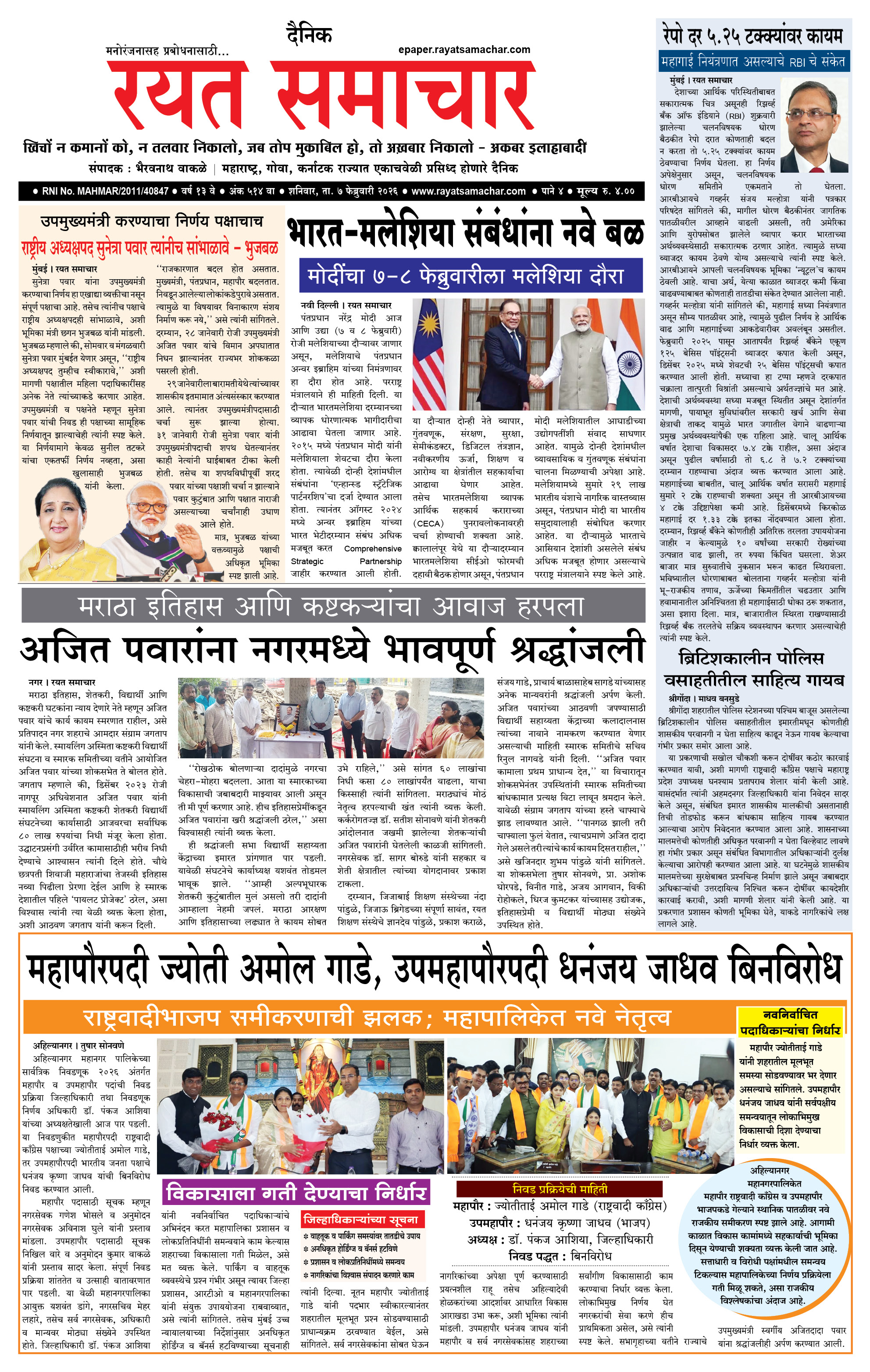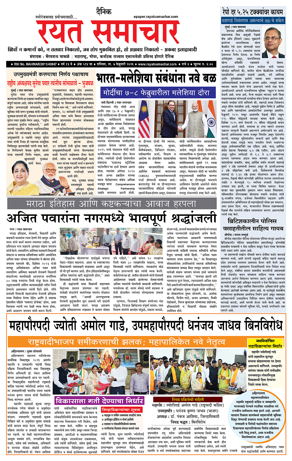 RSE: आजचा रयत समाचार वाचा 07 Feb 2026 मनोरंजनासह प्रबोधनासाठी...