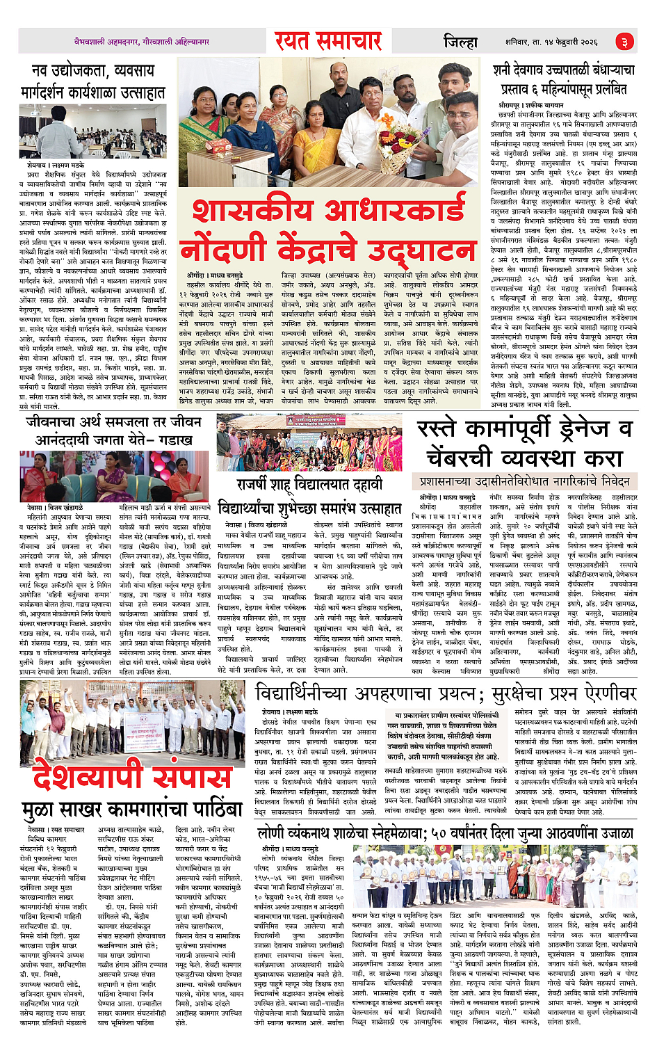 RSE: आजचा रयत समाचार वाचा 14 Feb 2026 मनोरंजनासह प्रबोधनासाठी... Page: 3 February 14, 2026 << First << 1 2 3 4 >> Last >> Page 1Page 2Page 3Page 4 × RSE: आजचा रयत समाचार वाचा 14 Feb 2026 मनोरंजनासह प्रबोधनासाठी... 1_MAIN PAGE2_CITY PAGE3_DISTRICT_PAGE4_MAHARSHTRA_PAGE << First << 3 >> Last >> 1_MAIN PAGE2_CITY PAGE3_DISTRICT_PAGE4_MAHARSHTRA_PAGE