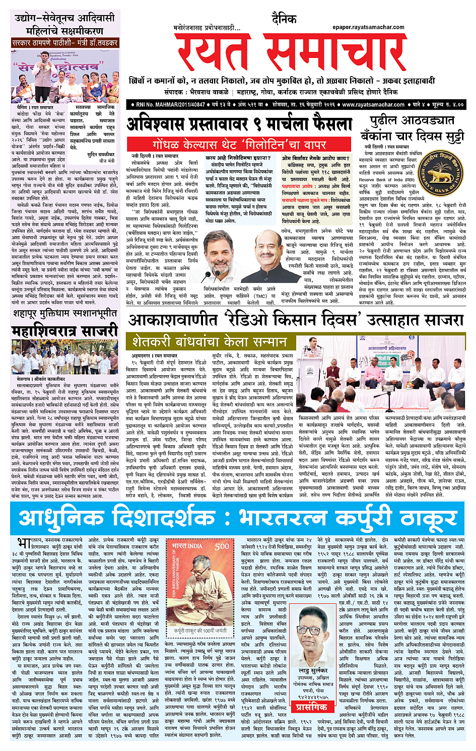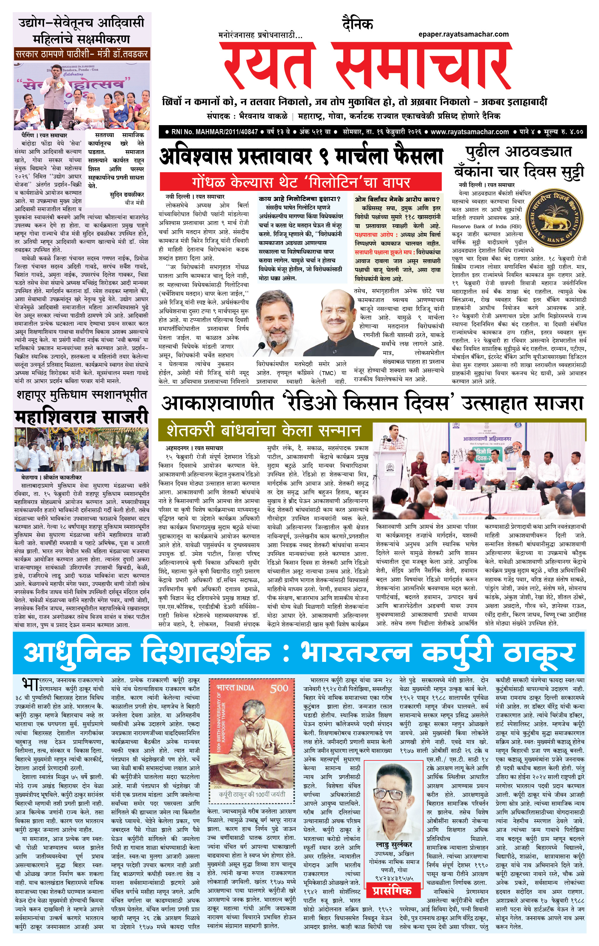 RSE: आजचा रयत समाचार वाचा 16 Feb 2026 मनोरंजनासह प्रबोधनासाठी... February 16, 2026 << First << 1 2 3 4 >> Last >> Page 1Page 2Page 3Page 4 × RSE: आजचा रयत समाचार वाचा 16 Feb 2026 मनोरंजनासह प्रबोधनासाठी... 1_MAIN PAGE2_CITY PAGE3_DISTRICT_PAGE4_MAHARSHTRA_PAGE << First << 1 >> Last >> 1_MAIN PAGE2_CITY PAGE3_DISTRICT_PAGE4_MAHARSHTRA_PAGE