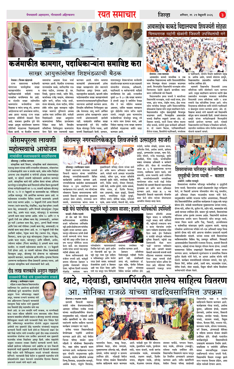 RSE: आजचा रयत समाचार वाचा 21 Feb 2026 मनोरंजनासह प्रबोधनासाठी.. Page: 3 February 21, 2026 << First << 1 2 3 4 >> Last >> Page 1Page 2Page 3Page 4 × RSE: आजचा रयत समाचार वाचा 21 Feb 2026 मनोरंजनासह प्रबोधनासाठी.. 1_MAIN PAGE2_CITY PAGE3_DISTRICT_PAGE4_MAHARSHTRA_PAGE << First << 3 >> Last >> 1_MAIN PAGE2_CITY PAGE3_DISTRICT_PAGE4_MAHARSHTRA_PAGE