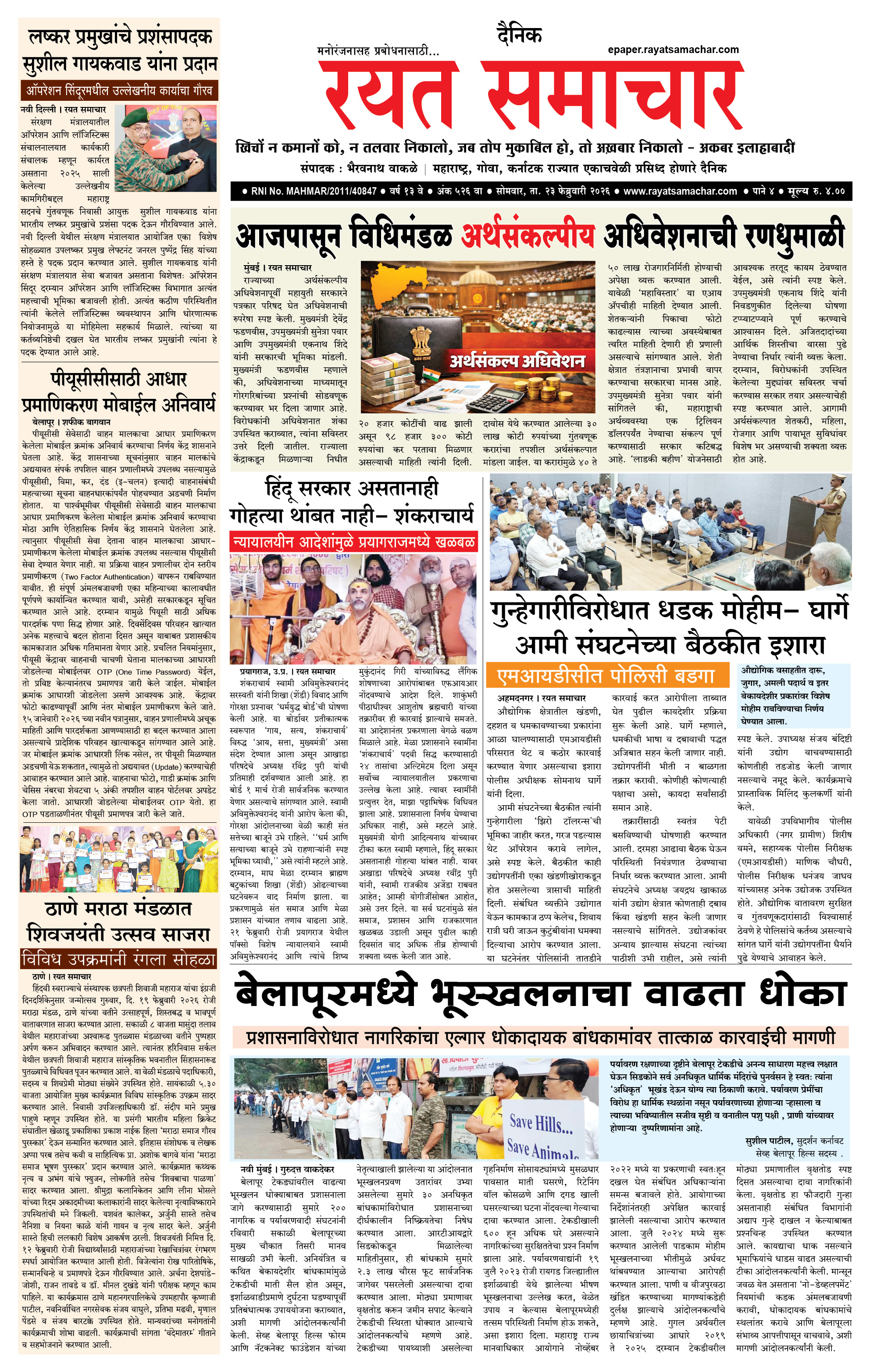 RSE: आजचा रयत समाचार वाचा 23 Feb 2026 मनोरंजनासह प्रबोधनासाठी.. February 23, 2026 << First << 1 2 3 4 >> Last >> Page 1Page 2Page 3Page 4 × RSE: आजचा रयत समाचार वाचा 23 Feb 2026 मनोरंजनासह प्रबोधनासाठी.. 1_MAIN PAGE2_CITY PAGE3_DISTRICT_PAGE4_MAHARSHTRA_PAGE << First << 1 >> Last >> 1_MAIN PAGE2_CITY PAGE3_DISTRICT_PAGE4_MAHARSHTRA_PAGE
