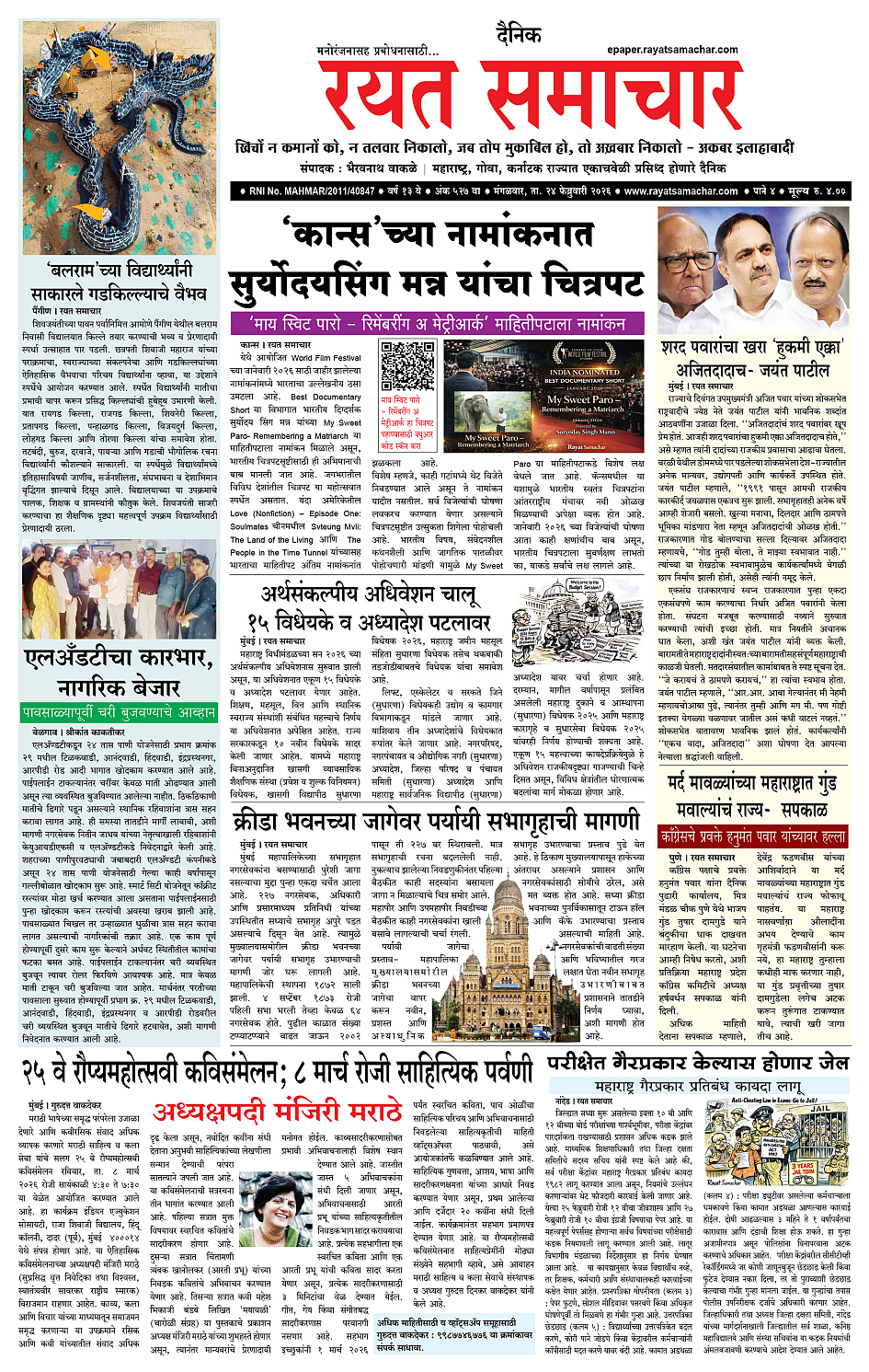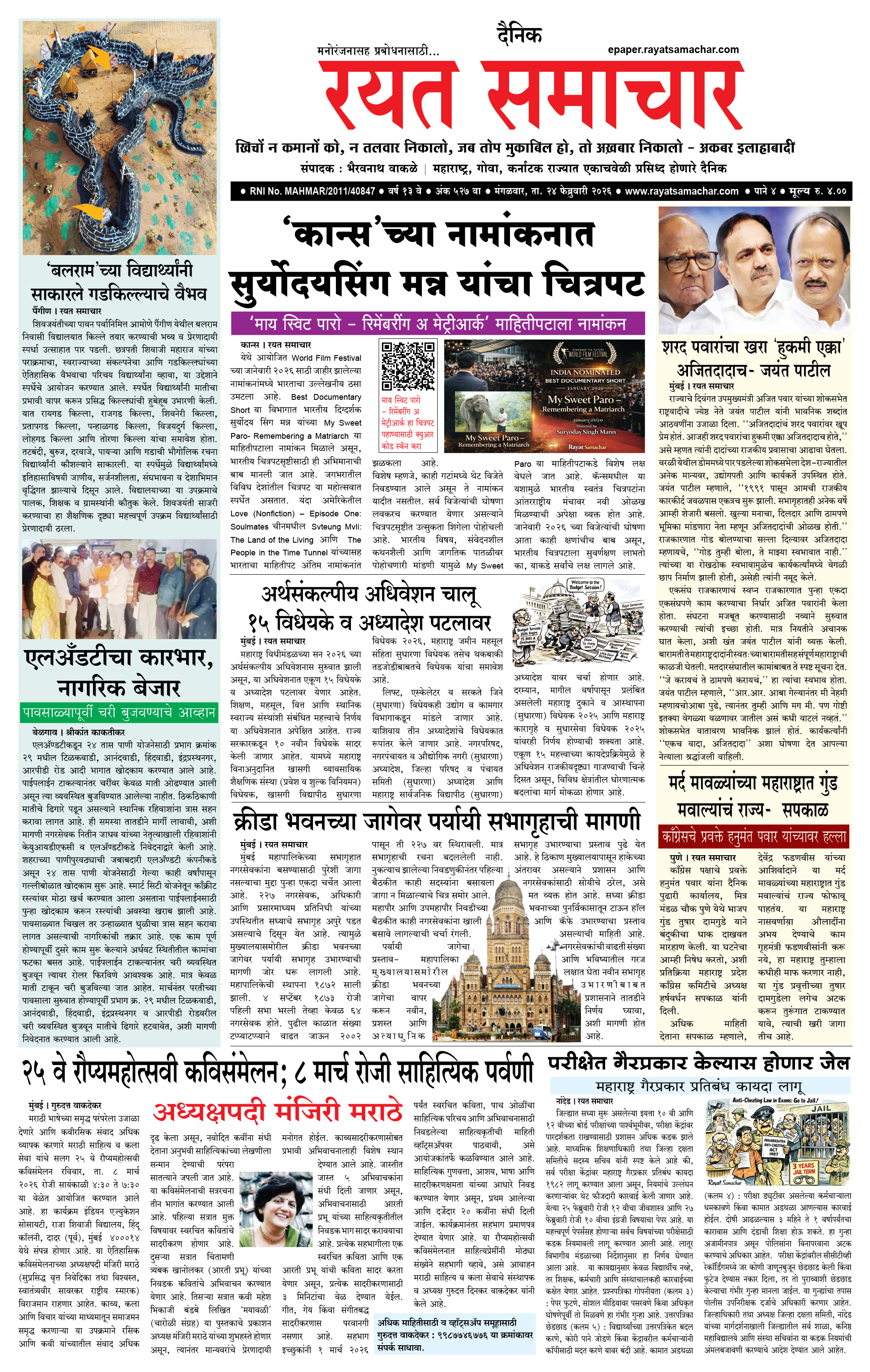 RSE: आजचा रयत समाचार वाचा 24 Feb 2026 मनोरंजनासह प्रबोधनासाठी..