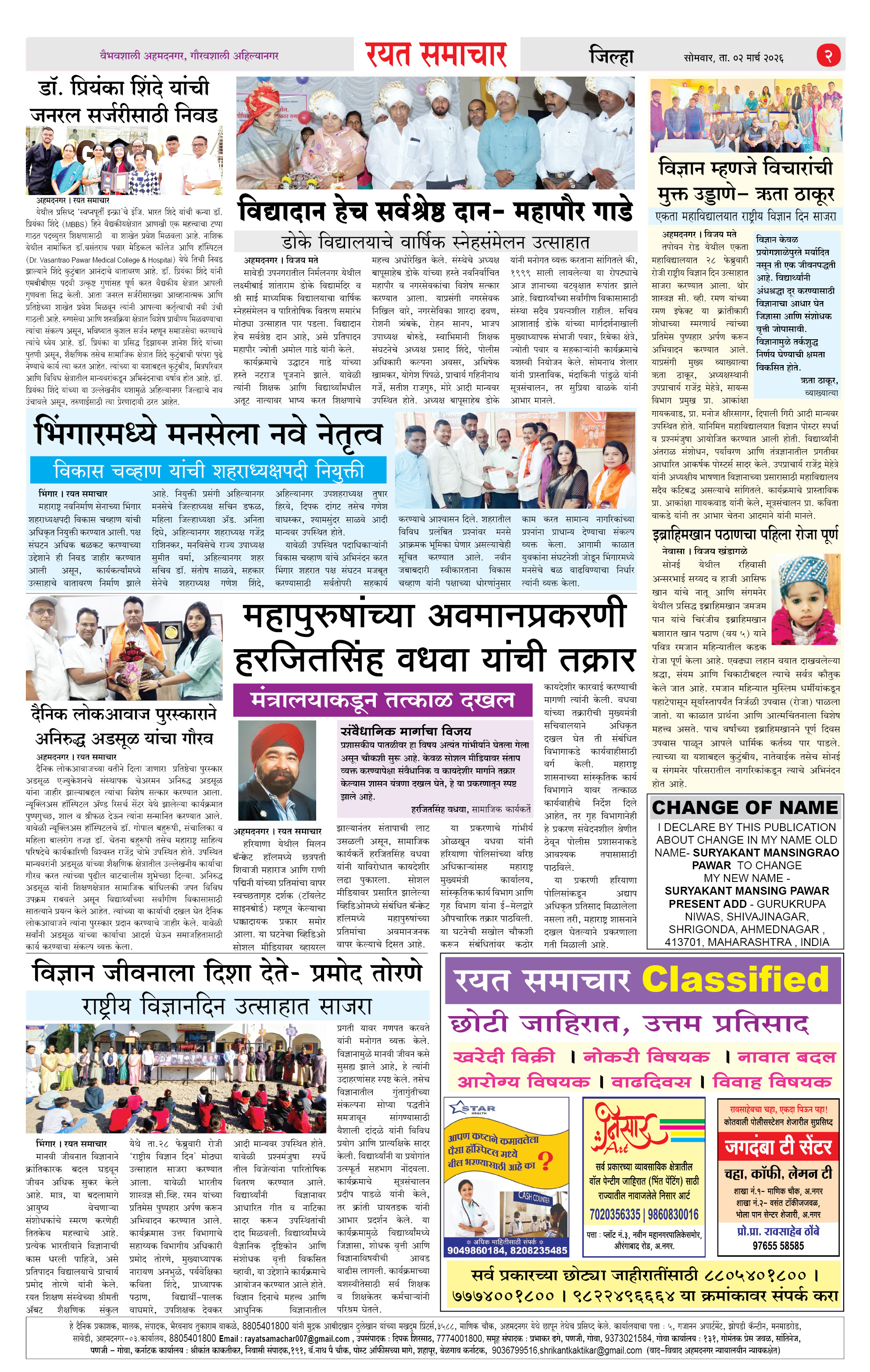 RSE: आजचा रयत समाचार वाचा 02 Mar 2026 मनोरंजनासह प्रबोधनासाठी.. Page: 2 March 02, 2026 << First << 1 2 3 4 >> Last >> Page 1Page 2Page 3Page 4 × RSE: आजचा रयत समाचार वाचा 02 Mar 2026 मनोरंजनासह प्रबोधनासाठी.. 1_MAIN PAGE2_CITY PAGE3_DISTRICT_PAGE4_MAHARSHTRA_PAGE << First << 2 >> Last >> 1_MAIN PAGE2_CITY PAGE3_DISTRICT_PAGE4_MAHARSHTRA_PAGE