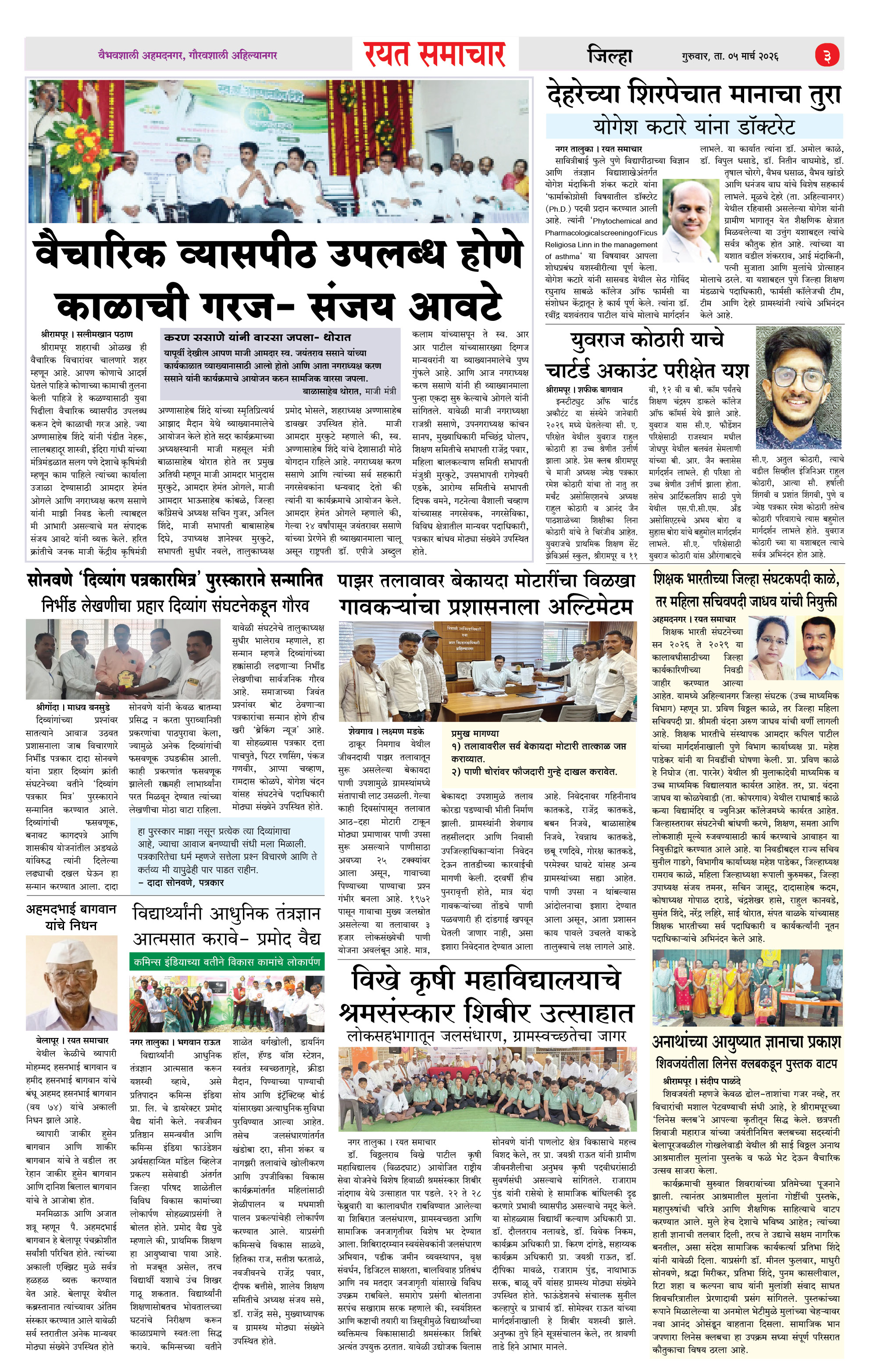 RSE: आजचा रयत समाचार वाचा 05 Mar 2026 मनोरंजनासह प्रबोधनासाठी.. Page: 3 March 05, 2026 << First << 1 2 3 4 >> Last >> Page 1Page 2Page 3Page 4 × RSE: आजचा रयत समाचार वाचा 05 Mar 2026 मनोरंजनासह प्रबोधनासाठी.. 1_MAIN PAGE2_CITY PAGE3_DISTRICT_PAGE4_MAHARSHTRA_PAGE << First << 3 >> Last >> 1_MAIN PAGE2_CITY PAGE3_DISTRICT_PAGE4_MAHARSHTRA_PAGE