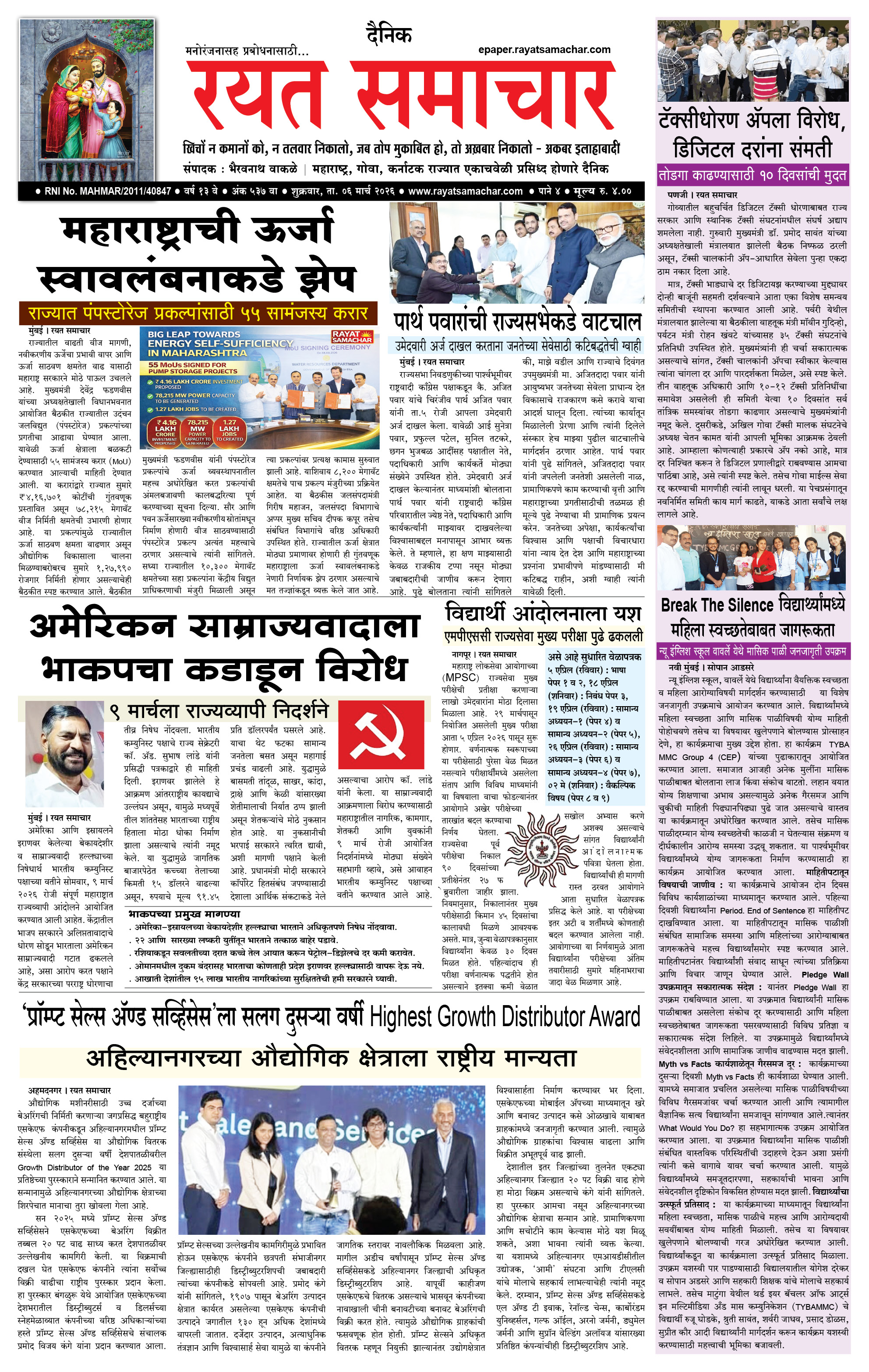 RSE: आजचा रयत समाचार वाचा 06 Mar 2026 मनोरंजनासह प्रबोधनासाठी.. March 06, 2026 << First << 1 2 3 4 >> Last >> Page 1Page 2Page 3Page 4 × RSE: आजचा रयत समाचार वाचा 06 Mar 2026 मनोरंजनासह प्रबोधनासाठी.. 1_MAIN PAGE2_CITY PAGE3_DISTRICT_PAGE4_MAHARSHTRA_PAGE << First << 1 >> Last >> 1_MAIN PAGE2_CITY PAGE3_DISTRICT_PAGE4_MAHARSHTRA_PAGE