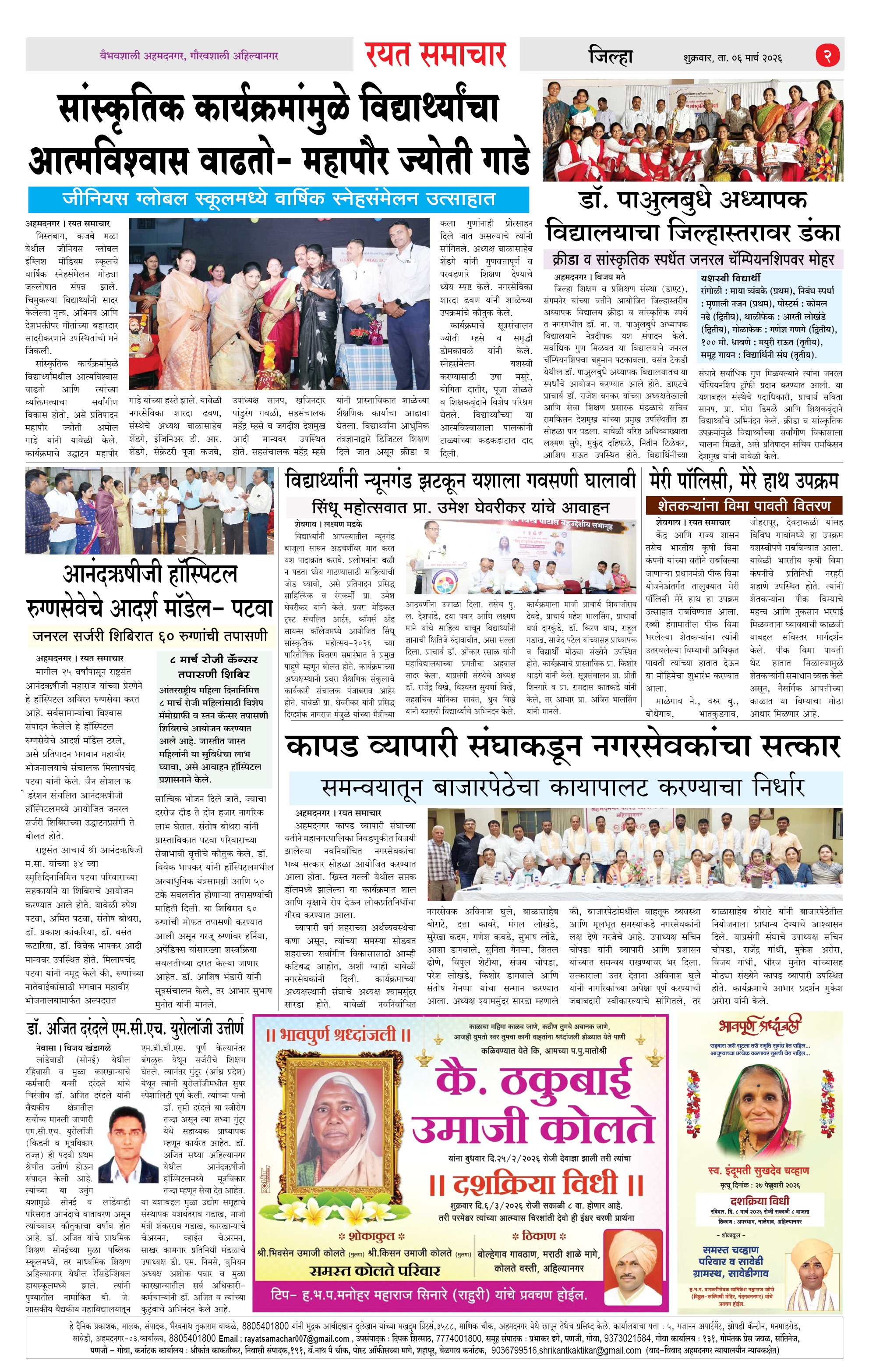 RSE: आजचा रयत समाचार वाचा 06 Mar 2026 मनोरंजनासह प्रबोधनासाठी.. Page: 2 March 06, 2026 << First << 1 2 3 4 >> Last >> Page 1Page 2Page 3Page 4 × RSE: आजचा रयत समाचार वाचा 06 Mar 2026 मनोरंजनासह प्रबोधनासाठी.. 1_MAIN PAGE2_CITY PAGE3_DISTRICT_PAGE4_MAHARSHTRA_PAGE << First << 2 >> Last >> 1_MAIN PAGE2_CITY PAGE3_DISTRICT_PAGE4_MAHARSHTRA_PAGE