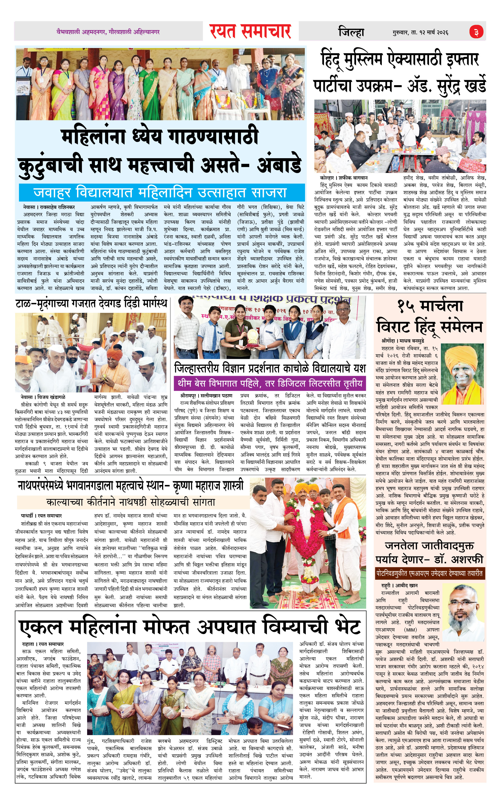 RSE: आजचा रयत समाचार वाचा 12 Mar 2026 मनोरंजनासह प्रबोधनासाठी.. Page: 3 March 12, 2026 << First << 1 2 3 4 >> Last >> Page 1Page 2Page 3Page 4 × RSE: आजचा रयत समाचार वाचा 12 Mar 2026 मनोरंजनासह प्रबोधनासाठी.. 1_MAIN PAGE2_CITY PAGE3_DISTRICT_PAGE4_MAHARSHTRA_PAGE << First << 3 >> Last >> 1_MAIN PAGE2_CITY PAGE3_DISTRICT_PAGE4_MAHARSHTRA_PAGE