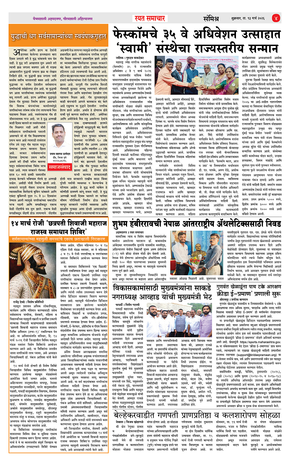 RSE: आजचा रयत समाचार वाचा 13 Mar 2026 मनोरंजनासह प्रबोधनासाठी.. Page: 4 March 13, 2026 << First << 1 2 3 4 >> Last >> Page 1Page 2Page 3Page 4 × RSE: आजचा रयत समाचार वाचा 13 Mar 2026 मनोरंजनासह प्रबोधनासाठी.. 1_MAIN PAGE2_CITY PAGE3_DISTRICT_PAGE4_MAHARSHTRA_PAGE << First << 4 >> Last >> 1_MAIN PAGE2_CITY PAGE3_DISTRICT_PAGE4_MAHARSHTRA_PAGE