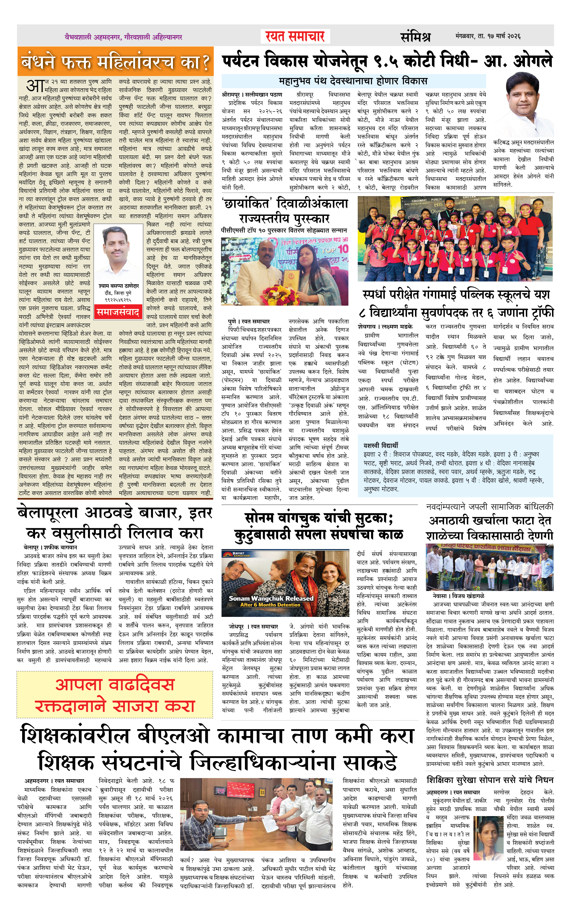 RSE: आजचा रयत समाचार वाचा 17 Mar 2026 मनोरंजनासह प्रबोधनासाठी.. Page: 4 March 17, 2026 << First << 1 2 3 4 >> Last >> Page 1Page 2Page 3Page 4 × RSE: आजचा रयत समाचार वाचा 17 Mar 2026 मनोरंजनासह प्रबोधनासाठी.. 1_MAIN PAGE2_CITY PAGE3_DISTRICT_PAGE4_MAHARSHTRA_PAGE << First << 4 >> Last >> 1_MAIN PAGE2_CITY PAGE3_DISTRICT_PAGE4_MAHARSHTRA_PAGE