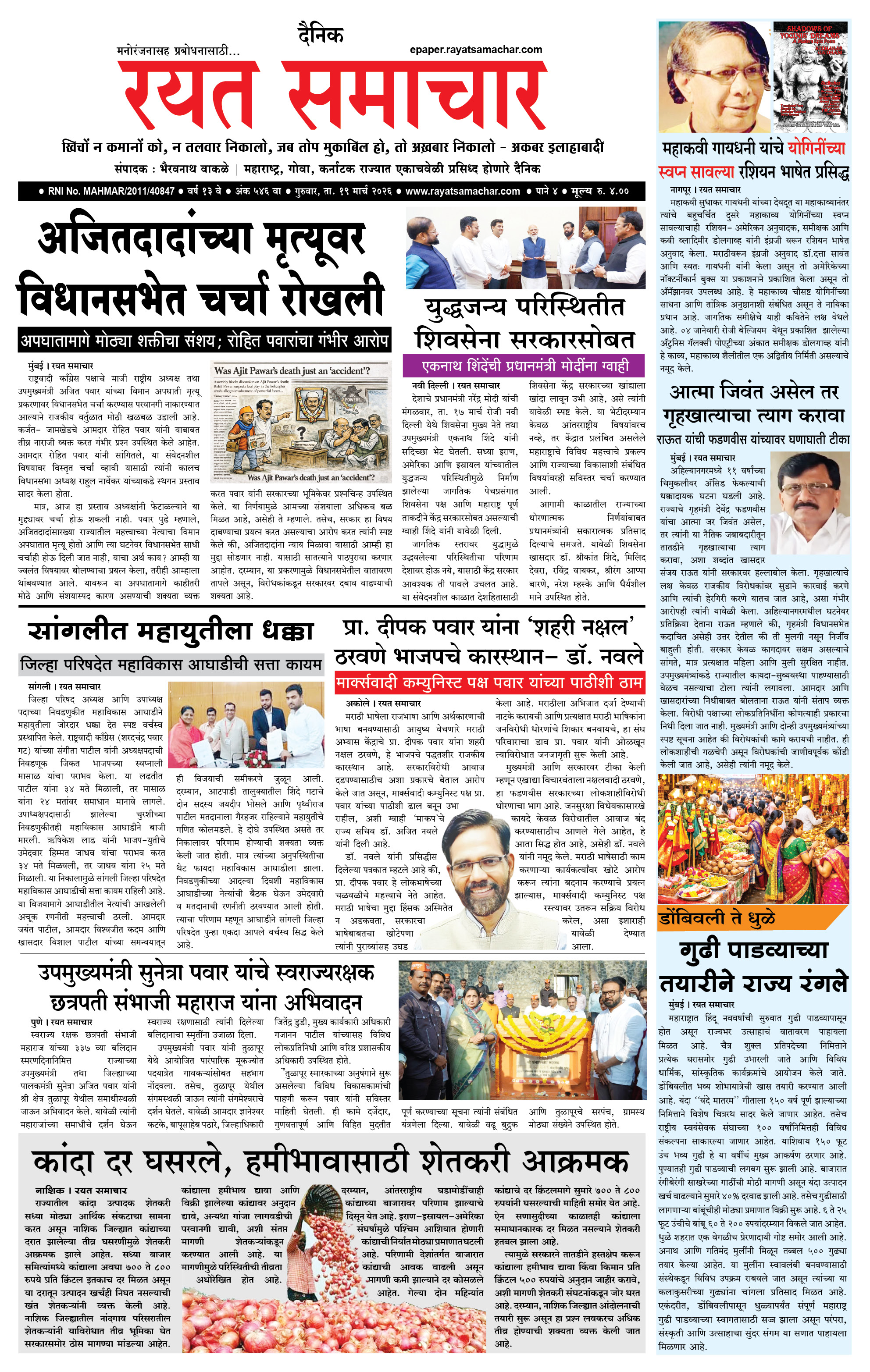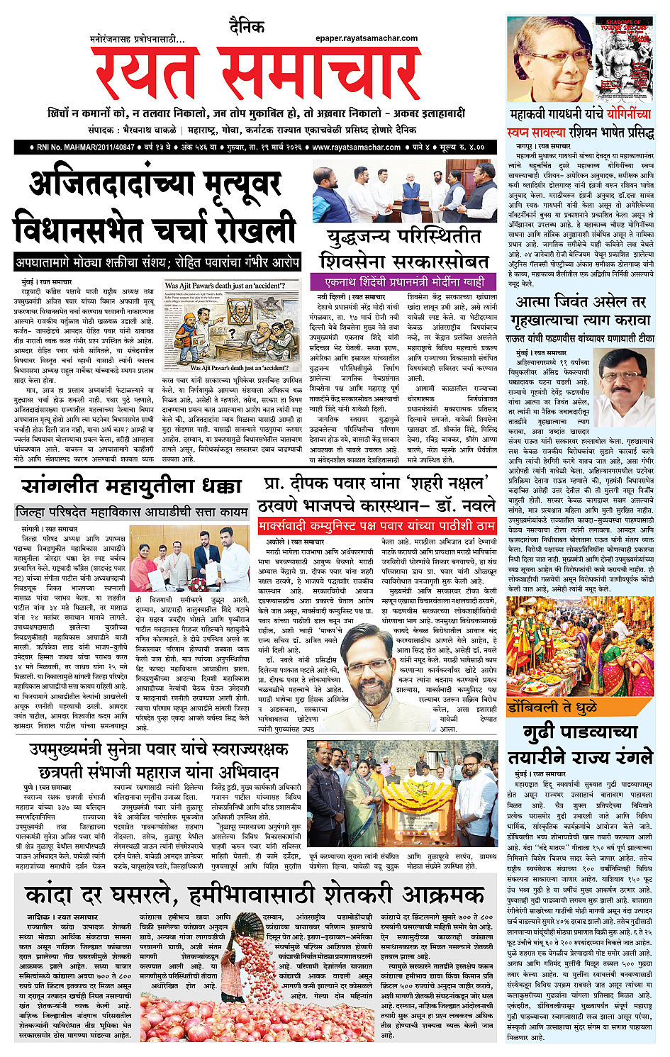 RSE: आजचा रयत समाचार वाचा 19 Mar 2026 मनोरंजनासह प्रबोधनासाठी..गुढीपाडव्याच्या हार्दिक शुभेच्छा! March 19, 2026 << First << 1 2 3 4 >> Last >> Page 1Page 2Page 3Page 4 × RSE: आजचा रयत समाचार वाचा 19 Mar 2026 मनोरंजनासह प्रबोधनासाठी..गुढीपाडव्याच्या हार्दिक शुभेच्छा! 1_MAIN PAGE2_CITY PAGE3_DISTRICT_PAGE4_MAHARSHTRA_PAGE << First << 1 >> Last >> 1_MAIN PAGE2_CITY PAGE3_DISTRICT_PAGE4_MAHARSHTRA_PAGE