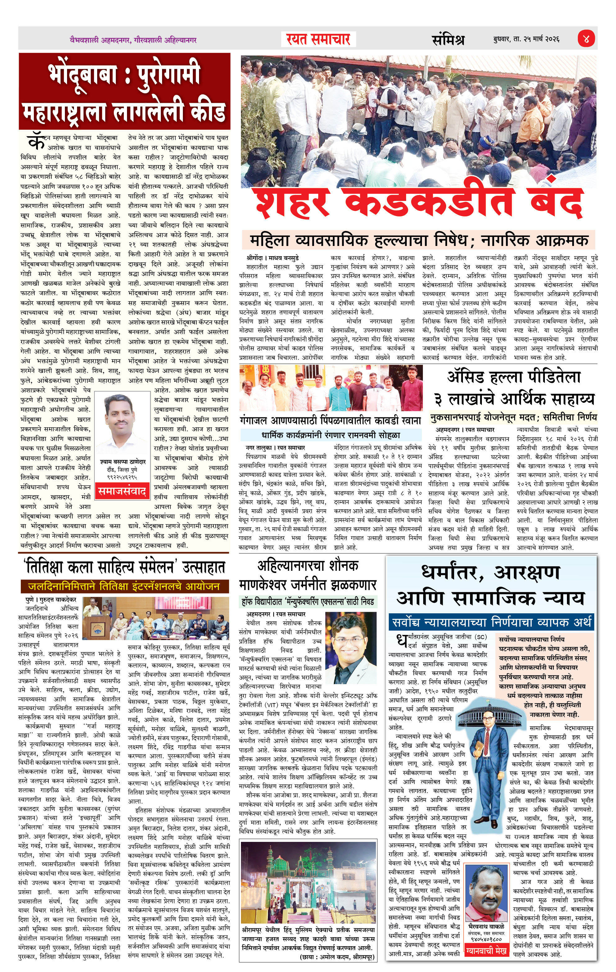 RSE: आजचा रयत समाचार वाचा 25 Mar 2026 मनोरंजनासह प्रबोधनासाठी.. Page: 4 March 25, 2026 << First << 1 2 3 4 >> Last >> Page 1Page 2Page 3Page 4 × RSE: आजचा रयत समाचार वाचा 25 Mar 2026 मनोरंजनासह प्रबोधनासाठी.. 1_MAIN PAGE2_CITY PAGE3_DISTRICT_PAGE4_MAHARSHTRA_PAGE << First << 4 >> Last >> 1_MAIN PAGE2_CITY PAGE3_DISTRICT_PAGE4_MAHARSHTRA_PAGE