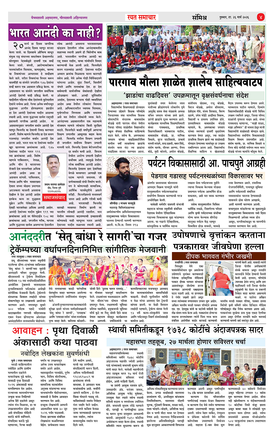 RSE: आजचा रयत समाचार वाचा 26 Mar 2026 मनोरंजनासह प्रबोधनासाठी.. Page: 4 March 26, 2026 << First << 1 2 3 4 >> Last >> Page 1Page 2Page 3Page 4 × RSE: आजचा रयत समाचार वाचा 26 Mar 2026 मनोरंजनासह प्रबोधनासाठी.. 1_MAIN PAGE2_CITY PAGE3_DISTRICT_PAGE4_MAHARSHTRA_PAGE << First << 4 >> Last >> 1_MAIN PAGE2_CITY PAGE3_DISTRICT_PAGE4_MAHARSHTRA_PAGE