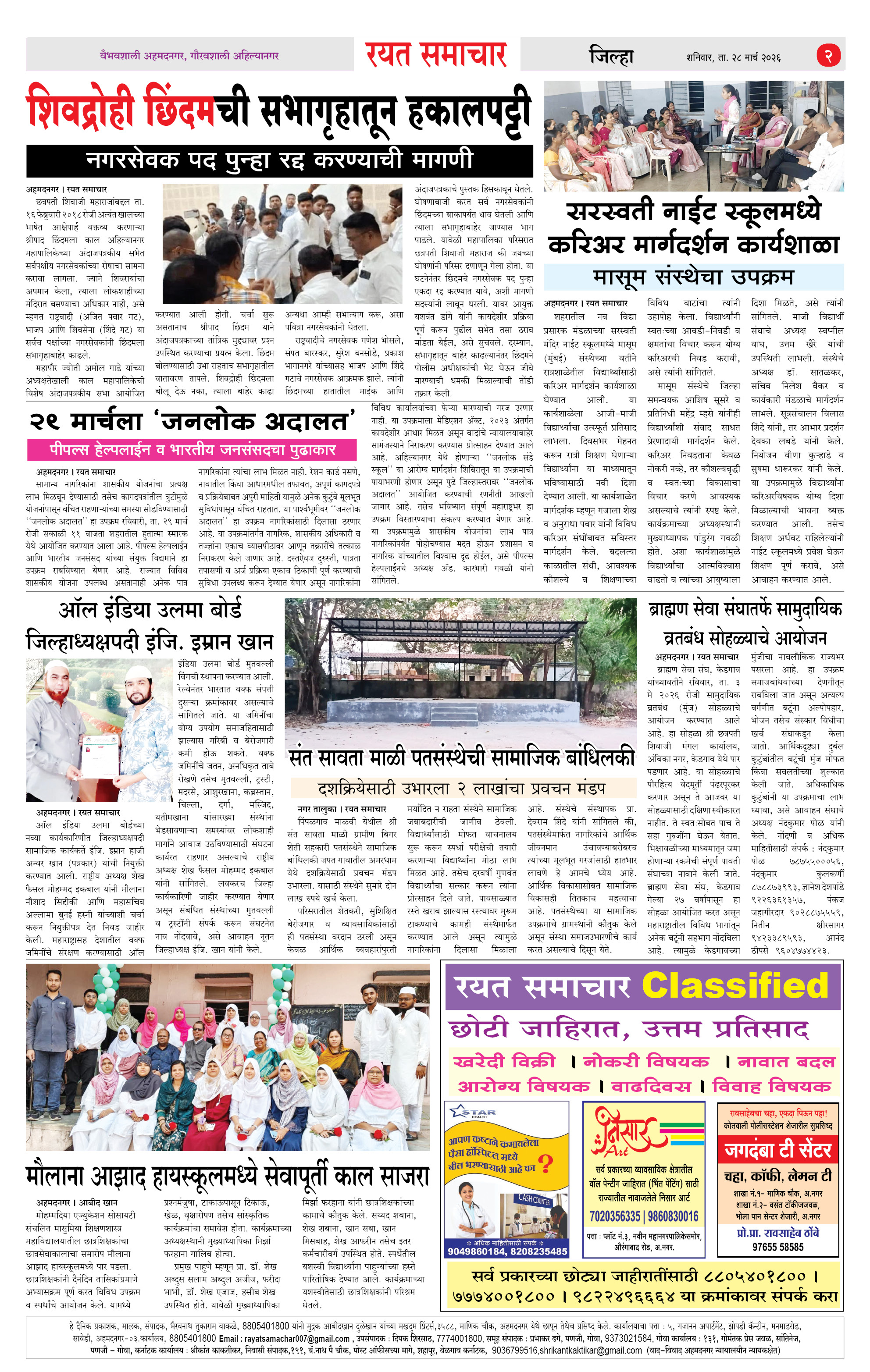 RSE: आजचा रयत समाचार वाचा 28 Mar 2026 मनोरंजनासह प्रबोधनासाठी Page: 2 March 28, 2026 << First << 1 2 3 4 >> Last >> Page 1Page 2Page 3Page 4 × RSE: आजचा रयत समाचार वाचा 28 Mar 2026 मनोरंजनासह प्रबोधनासाठी 1_MAIN PAGE2_CITY PAGE3_DISTRICT_PAGE4_MAHARSHTRA_PAGE << First << 2 >> Last >> 1_MAIN PAGE2_CITY PAGE3_DISTRICT_PAGE4_MAHARSHTRA_PAGE