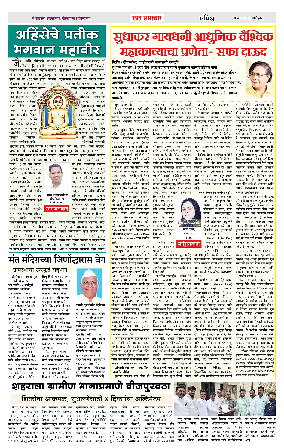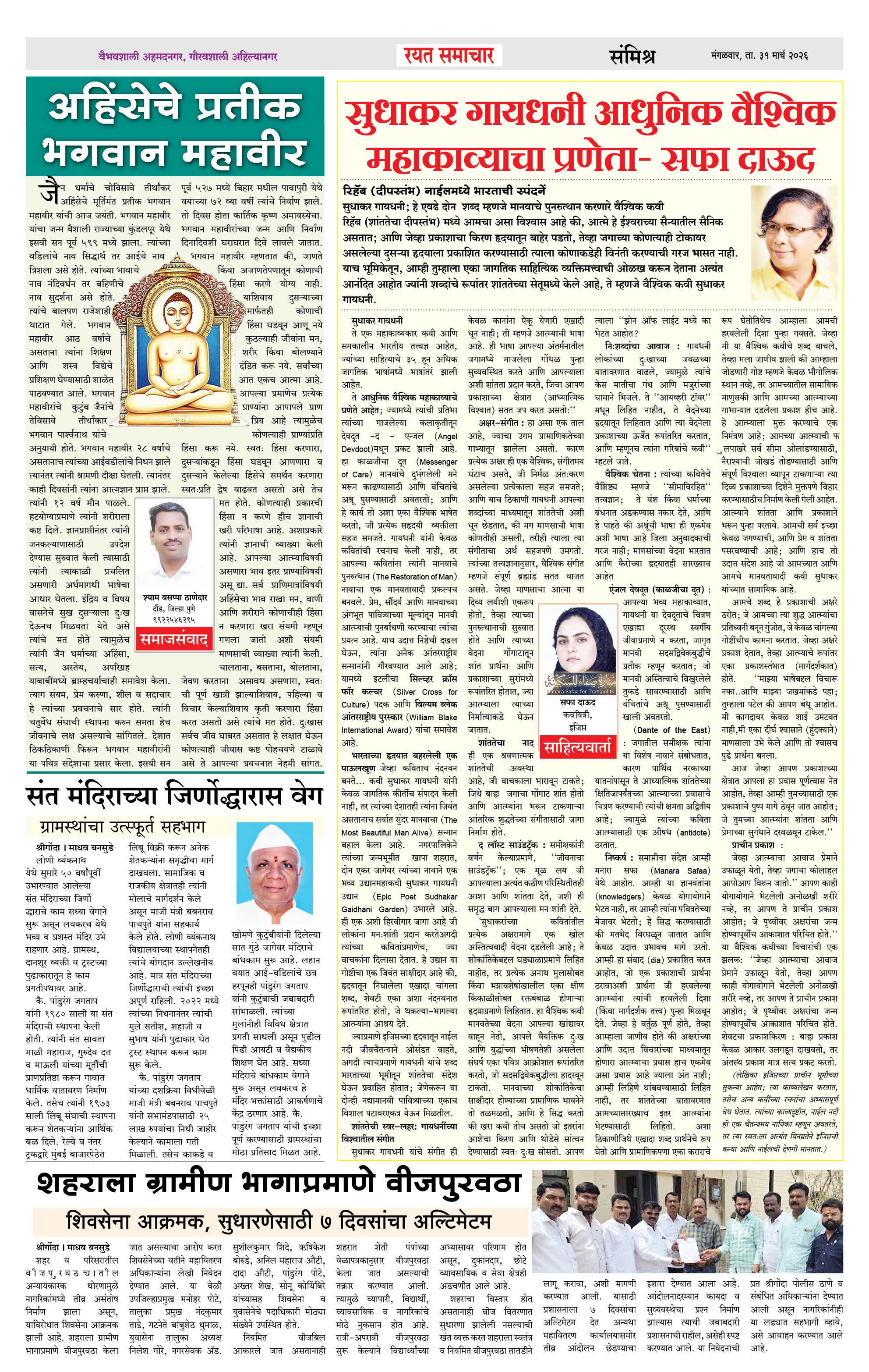 RSE: आजचा रयत समाचार वाचा 31 Mar 2026 मनोरंजनासह प्रबोधनासाठी Page: 4 March 31, 2026 << First << 1 2 3 4 >> Last >> Page 1Page 2Page 3Page 4 × RSE: आजचा रयत समाचार वाचा 31 Mar 2026 मनोरंजनासह प्रबोधनासाठी 1_MAIN PAGE2_CITY PAGE3_DISTRICT_PAGE4_MAHARSHTRA_PAGE << First << 4 >> Last >> 1_MAIN PAGE2_CITY PAGE3_DISTRICT_PAGE4_MAHARSHTRA_PAGE