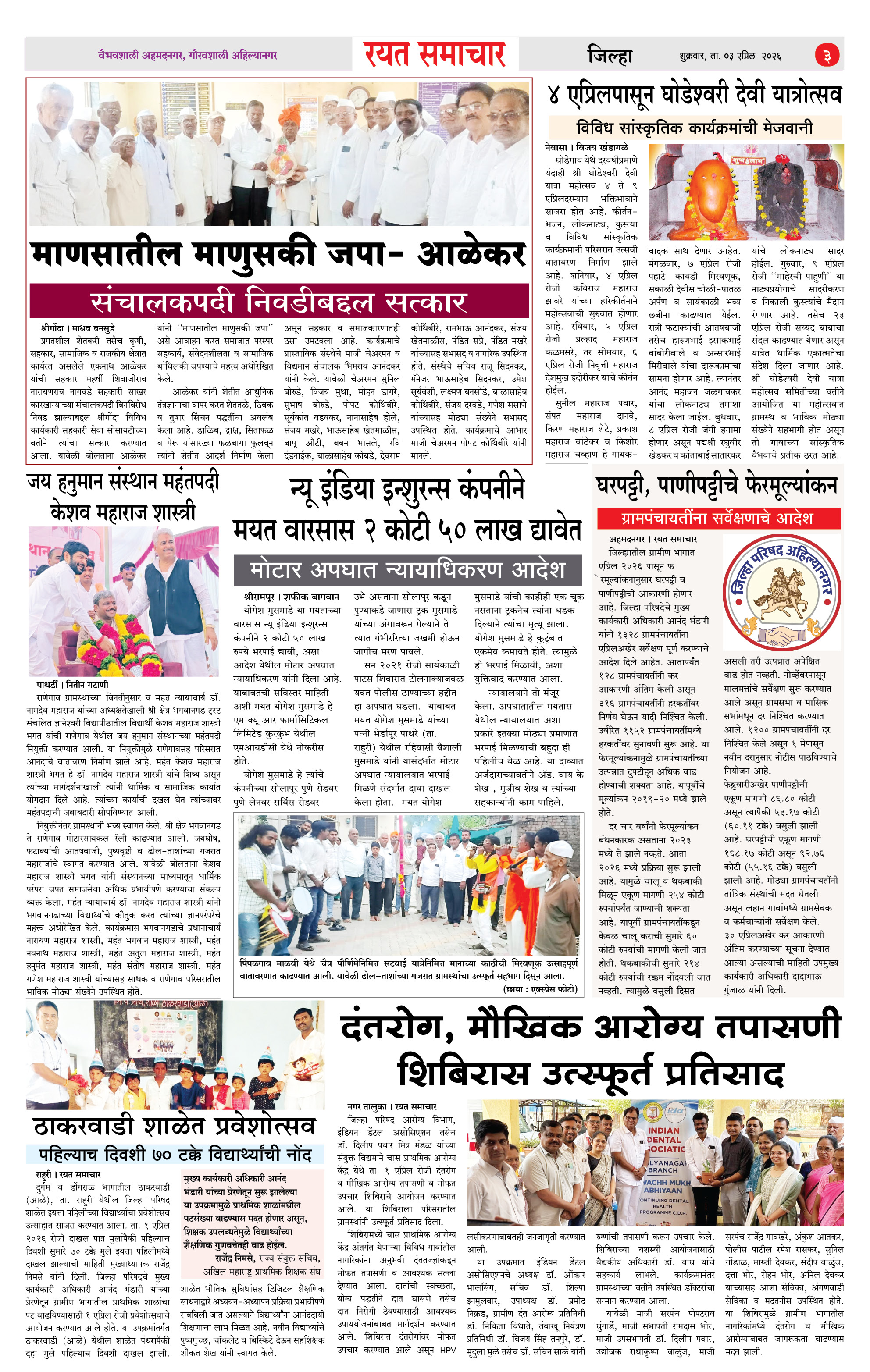 RSE: आजचा रयत समाचार वाचा 03 April 2026 मनोरंजनासह प्रबोधनासाठी Page: 3 April 03, 2026 << First << 1 2 3 4 >> Last >> Page 1Page 2Page 3Page 4 × RSE: आजचा रयत समाचार वाचा 03 April 2026 मनोरंजनासह प्रबोधनासाठी 1_MAIN PAGE2_CITY PAGE3_DISTRICT_PAGE4_MAHARSHTRA_PAGE << First << 3 >> Last >> 1_MAIN PAGE2_CITY PAGE3_DISTRICT_PAGE4_MAHARSHTRA_PAGE
