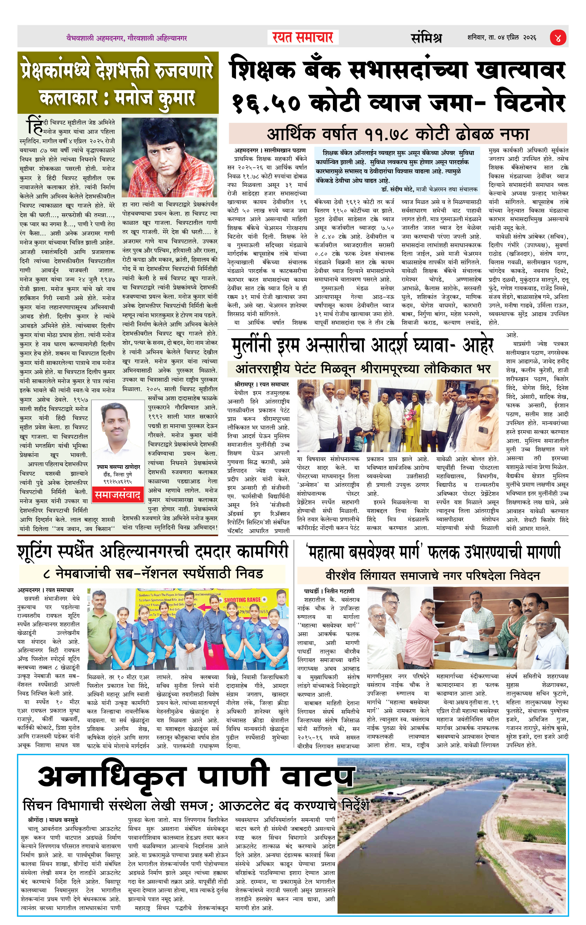 RSE: आजचा रयत समाचार वाचा 04 April 2026 मनोरंजनासह प्रबोधनासाठी Page: 4 April 04, 2026 << First << 1 2 3 4 >> Last >> Page 1Page 2Page 3Page 4 × RSE: आजचा रयत समाचार वाचा 04 April 2026 मनोरंजनासह प्रबोधनासाठी 1_MAIN PAGE2_CITY PAGE3_DISTRICT_PAGE4_MAHARSHTRA_PAGE << First << 4 >> Last >> 1_MAIN PAGE2_CITY PAGE3_DISTRICT_PAGE4_MAHARSHTRA_PAGE
