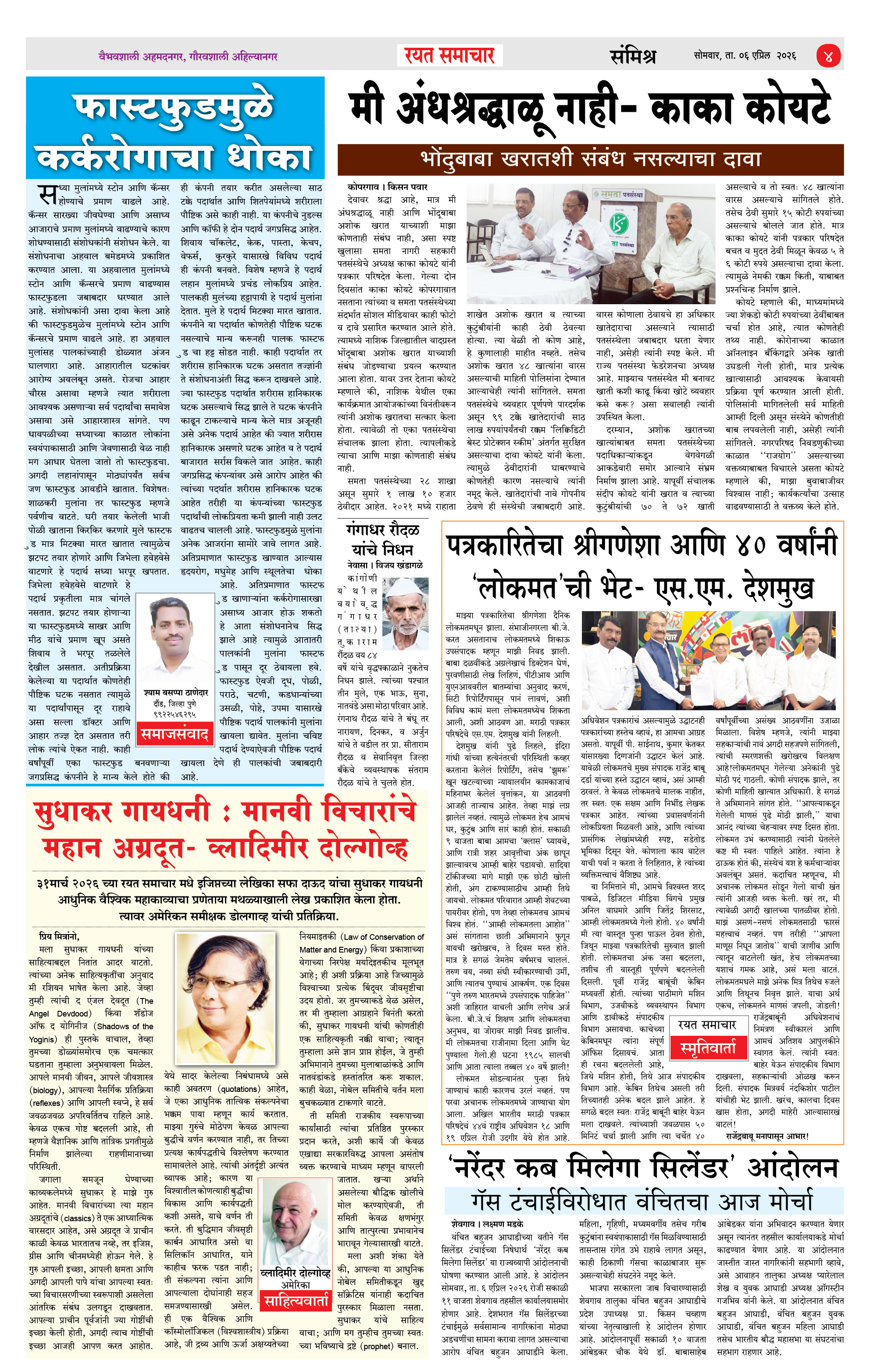 RSE: आजचा रयत समाचार वाचा 06 April 2026 मनोरंजनासह प्रबोधनासाठी Page: 4 April 06, 2026 << First << 1 2 3 4 >> Last >> Page 1Page 2Page 3Page 4 × RSE: आजचा रयत समाचार वाचा 06 April 2026 मनोरंजनासह प्रबोधनासाठी 1_MAIN PAGE2_CITY PAGE3_DISTRICT_PAGE4_MAHARSHTRA_PAGE << First << 4 >> Last >> 1_MAIN PAGE2_CITY PAGE3_DISTRICT_PAGE4_MAHARSHTRA_PAGE