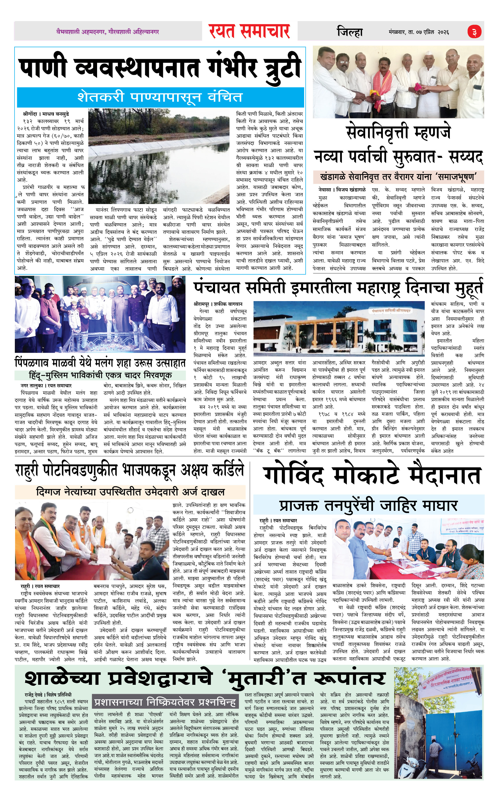 RSE: आजचा रयत समाचार वाचा 07 April 2026 मनोरंजनासह प्रबोधनासाठी Page: 3 April 07, 2026 << First << 1 2 3 4 >> Last >> Page 1Page 2Page 3Page 4 × RSE: आजचा रयत समाचार वाचा 07 April 2026 मनोरंजनासह प्रबोधनासाठी 1_MAIN PAGE2_CITY PAGE3_DISTRICT_PAGE4_MAHARSHTRA_PAGE << First << 3 >> Last >> 1_MAIN PAGE2_CITY PAGE3_DISTRICT_PAGE4_MAHARSHTRA_PAGE