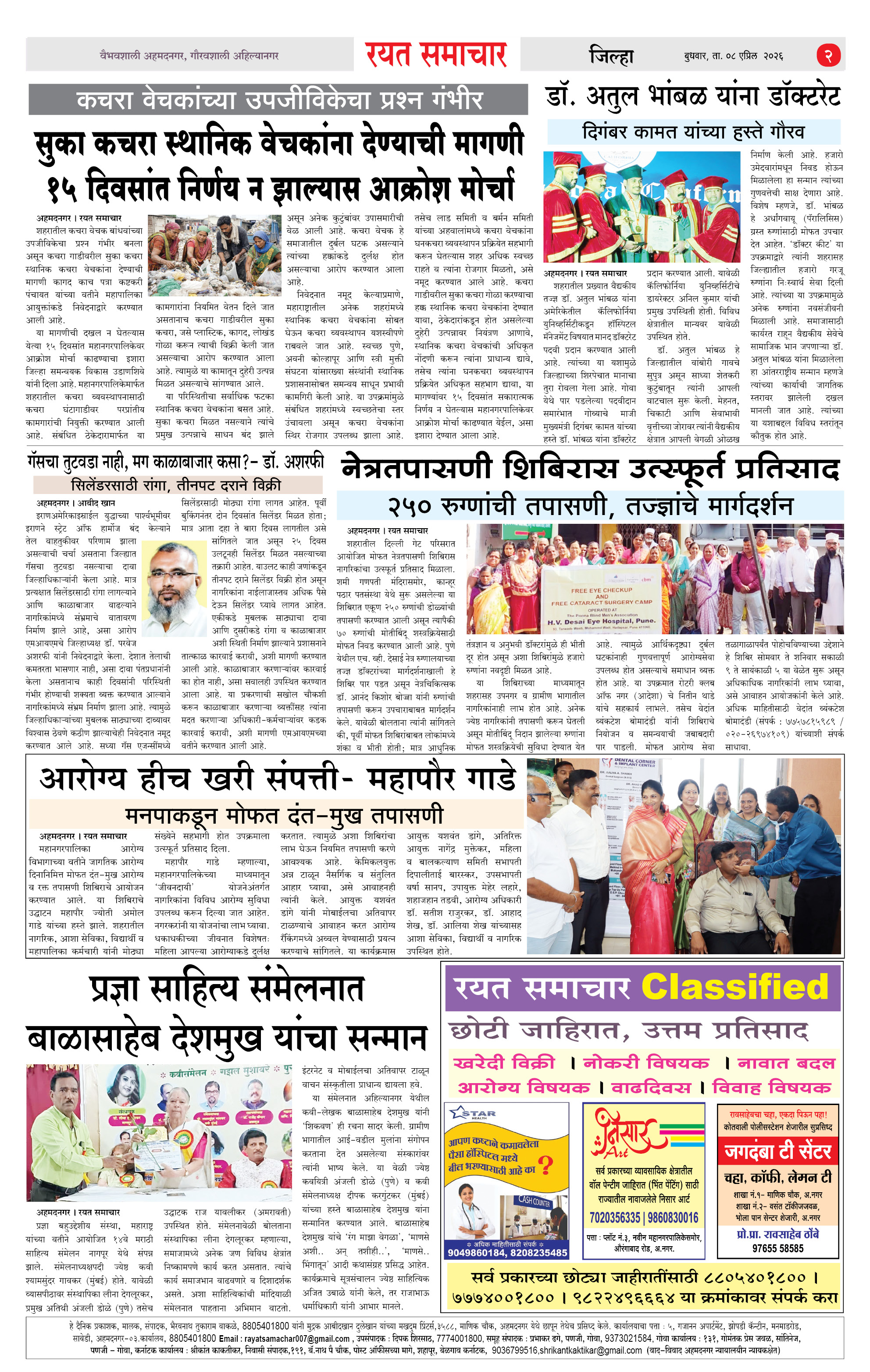 RSE: आजचा रयत समाचार वाचा 08 April 2026 मनोरंजनासह प्रबोधनासाठी Page: 2 April 08, 2026 << First << 1 2 3 4 >> Last >> Page 1Page 2Page 3Page 4 × RSE: आजचा रयत समाचार वाचा 08 April 2026 मनोरंजनासह प्रबोधनासाठी 1_MAIN PAGE2_CITY PAGE3_DISTRICT_PAGE4_MAHARSHTRA_PAGE << First << 2 >> Last >> 1_MAIN PAGE2_CITY PAGE3_DISTRICT_PAGE4_MAHARSHTRA_PAGE