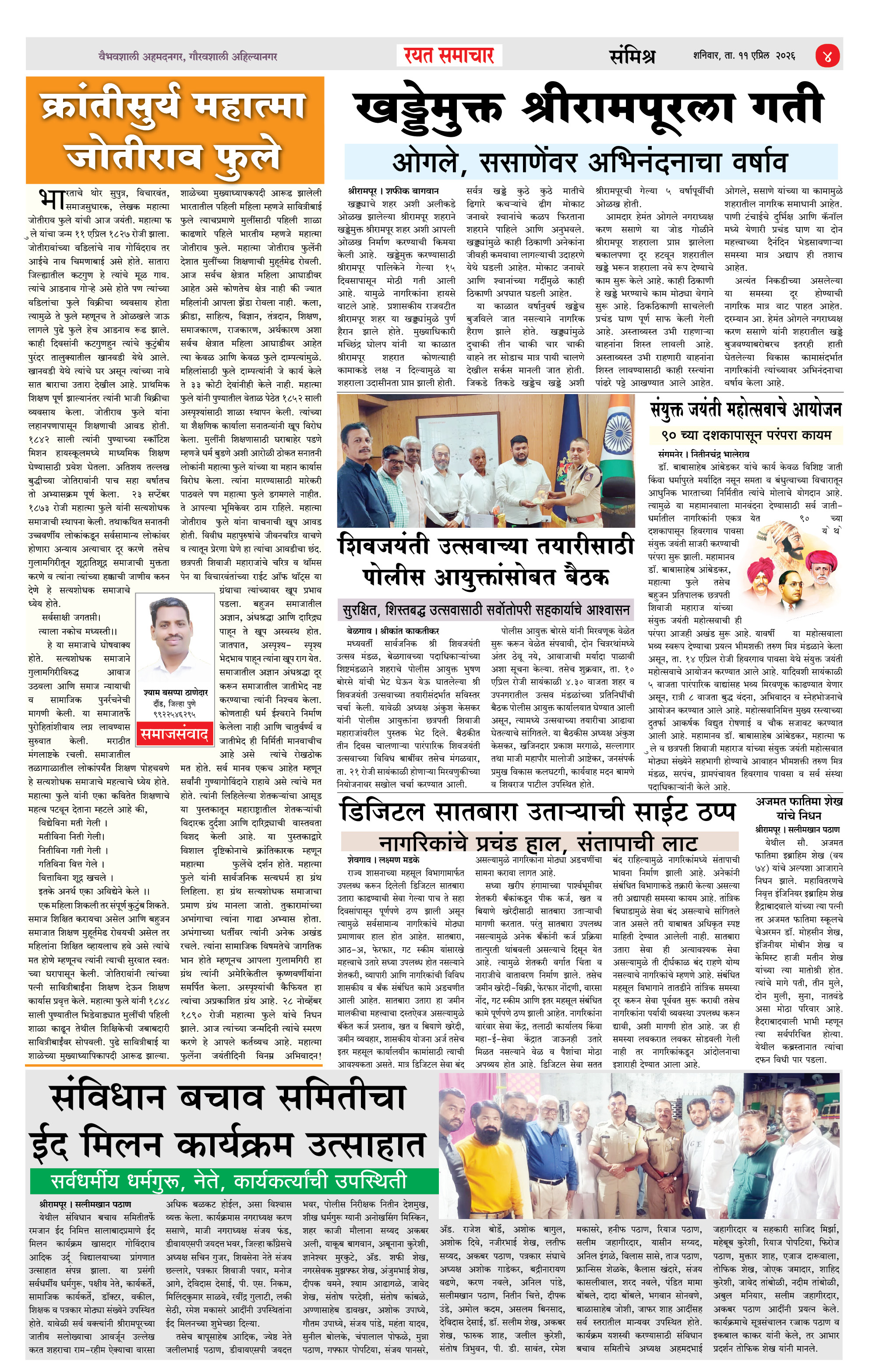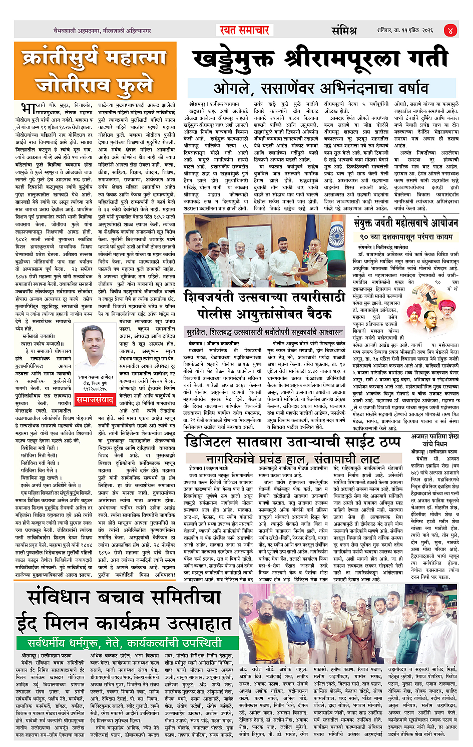 RSE: आजचा रयत समाचार वाचा 11 April 2026 मनोरंजनासह प्रबोधनासाठी Page: 4 April 11, 2026 << First << 1 2 3 4 >> Last >> Page 1Page 2Page 3Page 4 × RSE: आजचा रयत समाचार वाचा 11 April 2026 मनोरंजनासह प्रबोधनासाठी 1_MAIN PAGE2_CITY PAGE3_DISTRICT_PAGE4_MAHARSHTRA_PAGE << First << 4 >> Last >> 1_MAIN PAGE2_CITY PAGE3_DISTRICT_PAGE4_MAHARSHTRA_PAGE