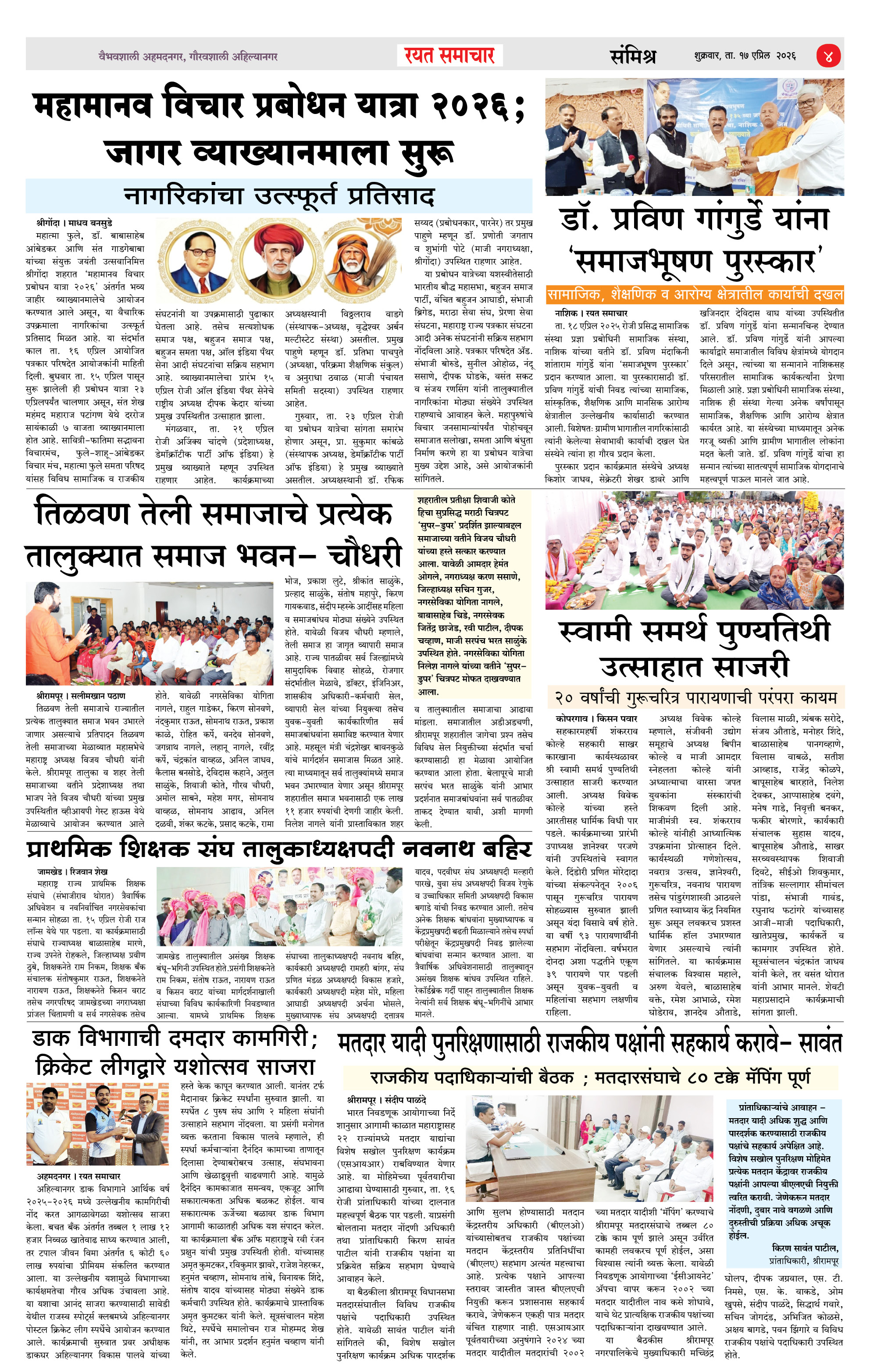 RSE: आजचा रयत समाचार वाचा 17 April 2026 मनोरंजनासह प्रबोधनासाठी.. Page: 4 April 17, 2026 << First << 1 2 3 4 >> Last >> Page 1Page 2Page 3Page 4 × RSE: आजचा रयत समाचार वाचा 17 April 2026 मनोरंजनासह प्रबोधनासाठी.. 1_MAIN PAGE2_CITY PAGE3_DISTRICT_PAGE4_MAHARSHTRA_PAGE << First << 4 >> Last >> 1_MAIN PAGE2_CITY PAGE3_DISTRICT_PAGE4_MAHARSHTRA_PAGE