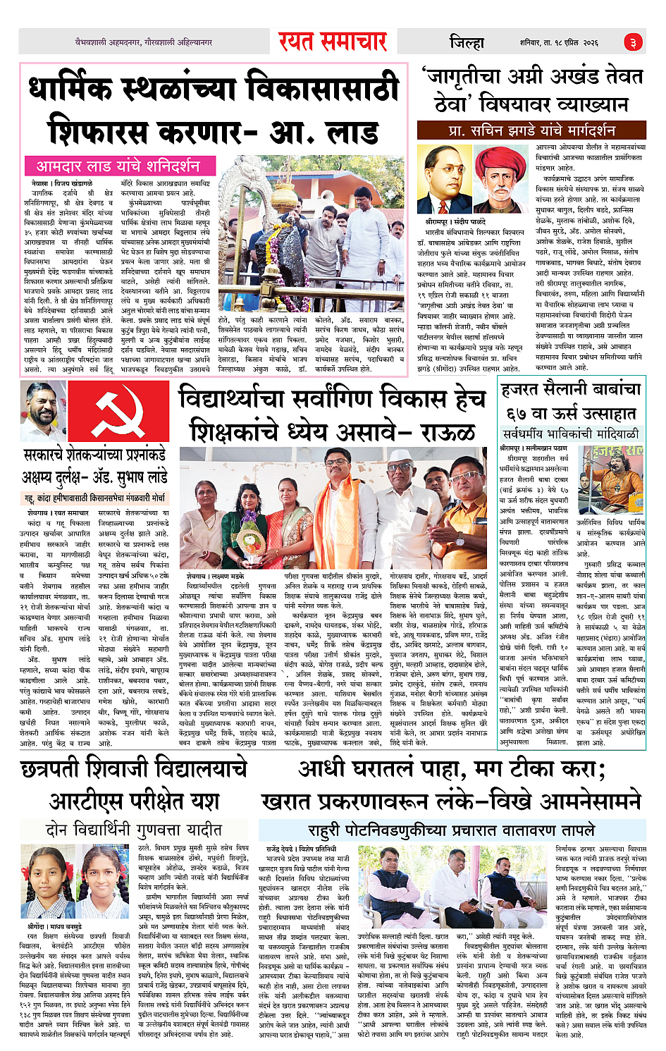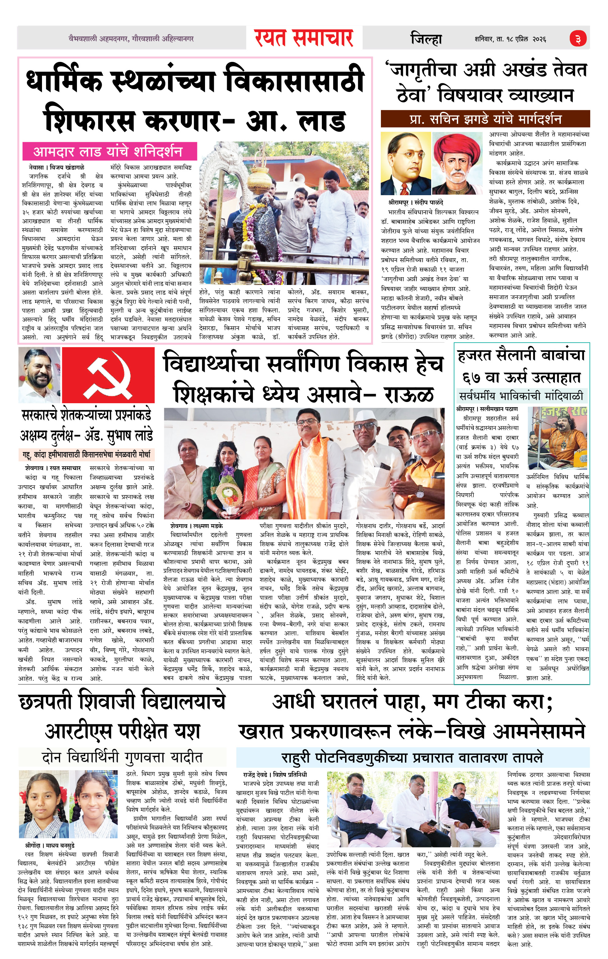 RSE: आजचा रयत समाचार वाचा 18 April 2026 मनोरंजनासह प्रबोधनासाठी.. Page: 3 April 18, 2026 << First << 1 2 3 4 >> Last >> Page 1Page 2Page 3Page 4 × RSE: आजचा रयत समाचार वाचा 18 April 2026 मनोरंजनासह प्रबोधनासाठी.. 1_MAIN PAGE2_CITY PAGE3_DISTRICT_PAGE4_MAHARSHTRA_PAGE << First << 3 >> Last >> 1_MAIN PAGE2_CITY PAGE3_DISTRICT_PAGE4_MAHARSHTRA_PAGE