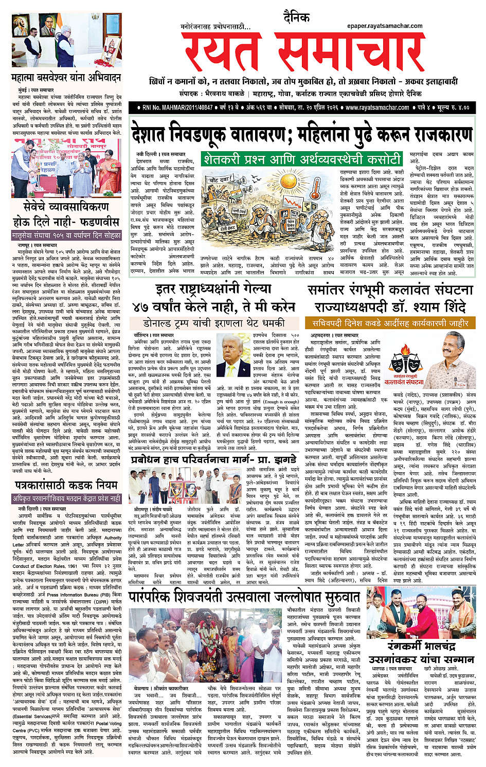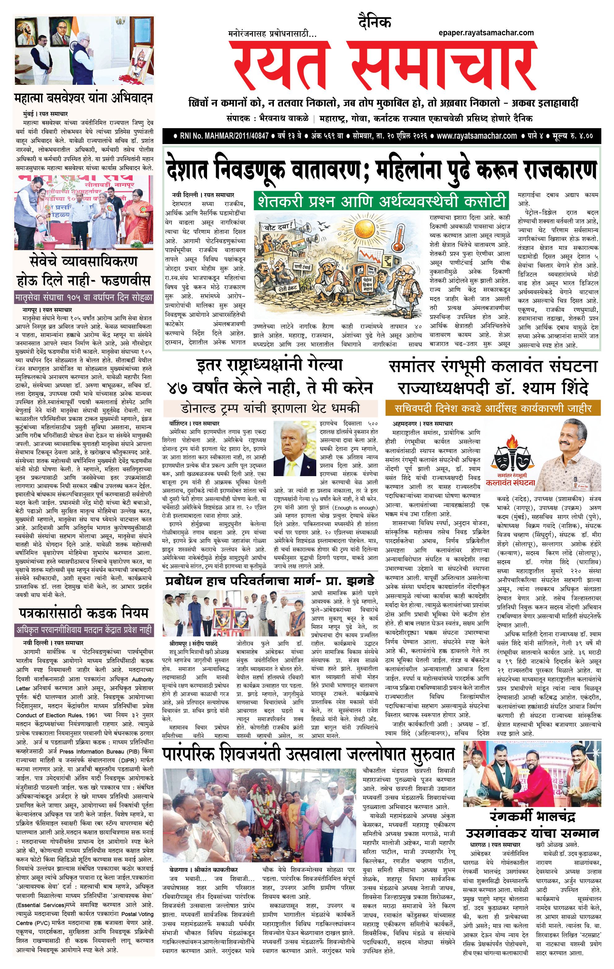 RSE: आजचा रयत समाचार वाचा 20 April 2026 मनोरंजनासह प्रबोधनासाठी..