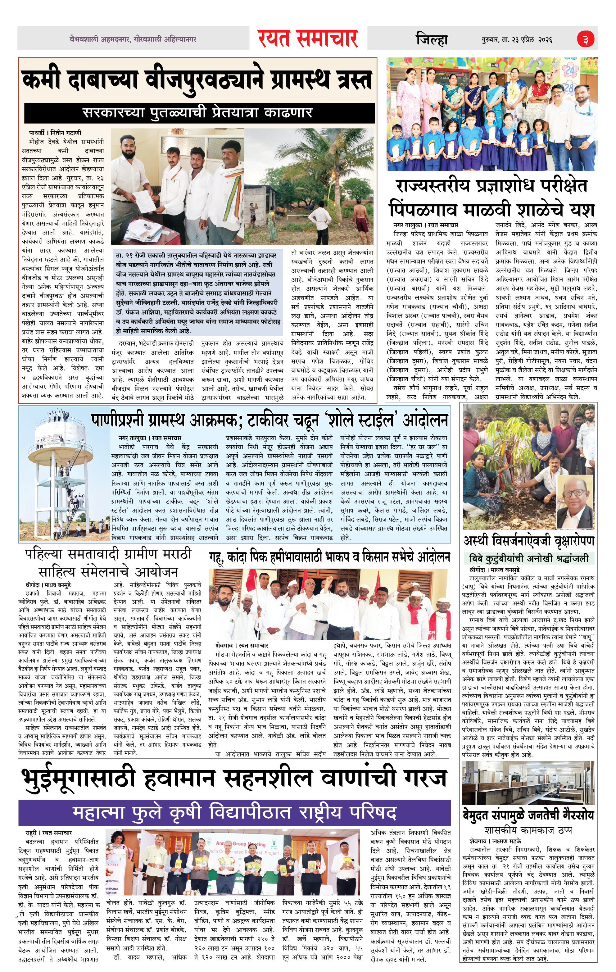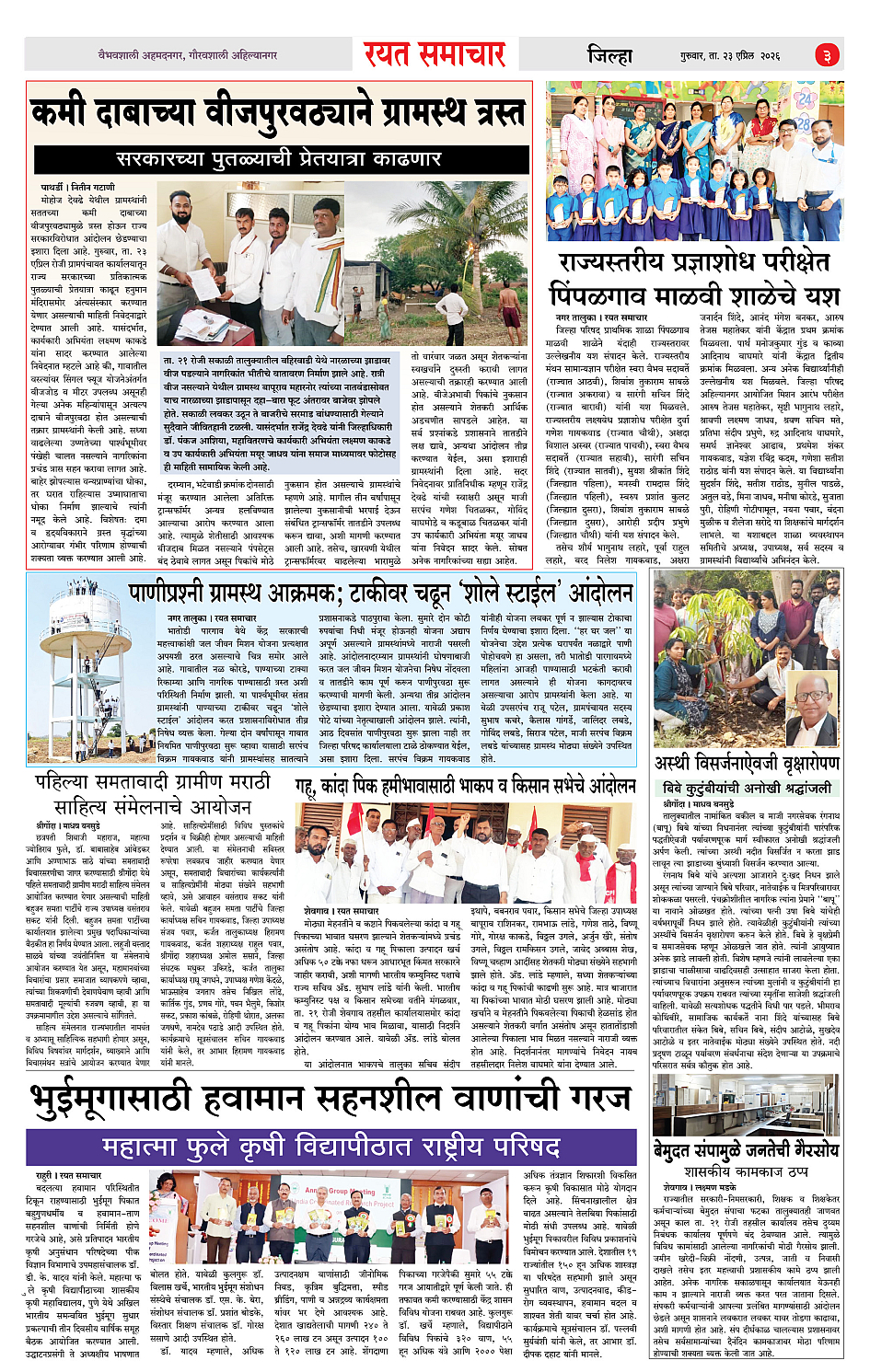 RSE: आजचा रयत समाचार वाचा 23 April 2026 मनोरंजनासह प्रबोधनासाठी.. Page: 3 April 23, 2026 << First << 1 2 3 4 >> Last >> Page 1Page 2Page 3Page 4 × RSE: आजचा रयत समाचार वाचा 23 April 2026 मनोरंजनासह प्रबोधनासाठी.. 1_MAIN PAGE2_CITY PAGE3_DISTRICT_PAGE4_MAHARSHTRA_PAGE << First << 3 >> Last >> 1_MAIN PAGE2_CITY PAGE3_DISTRICT_PAGE4_MAHARSHTRA_PAGE