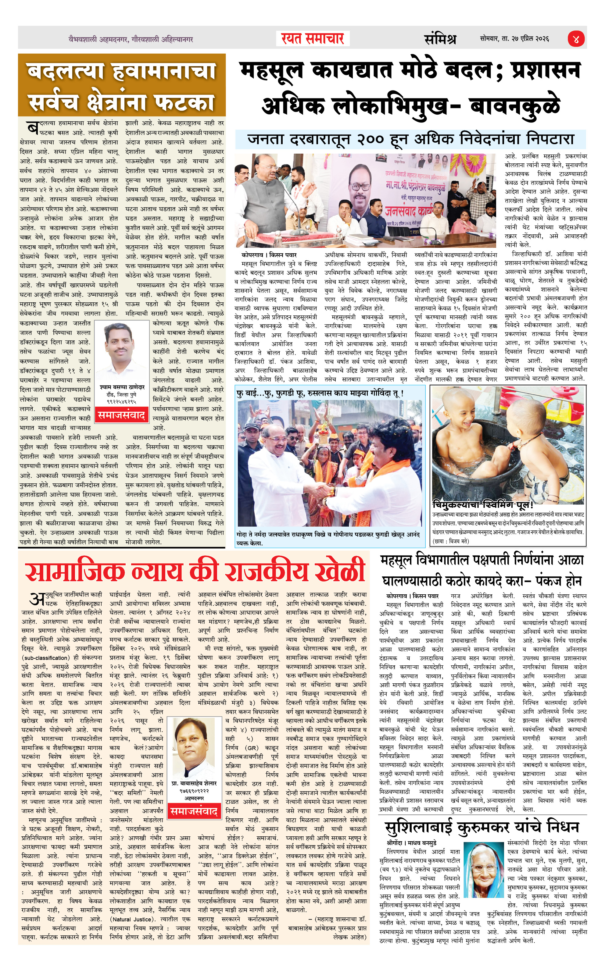 RSE: आजचा रयत समाचार वाचा 27 April 2026 मनोरंजनासह प्रबोधनासाठी.. Page: 4 April 27, 2026 << First << 1 2 3 4 >> Last >> Page 1Page 2Page 3Page 4 × RSE: आजचा रयत समाचार वाचा 27 April 2026 मनोरंजनासह प्रबोधनासाठी.. 1_MAIN PAGE2_CITY PAGE3_DISTRICT_PAGE4_MAHARSHTRA_PAGE << First << 4 >> Last >> 1_MAIN PAGE2_CITY PAGE3_DISTRICT_PAGE4_MAHARSHTRA_PAGE