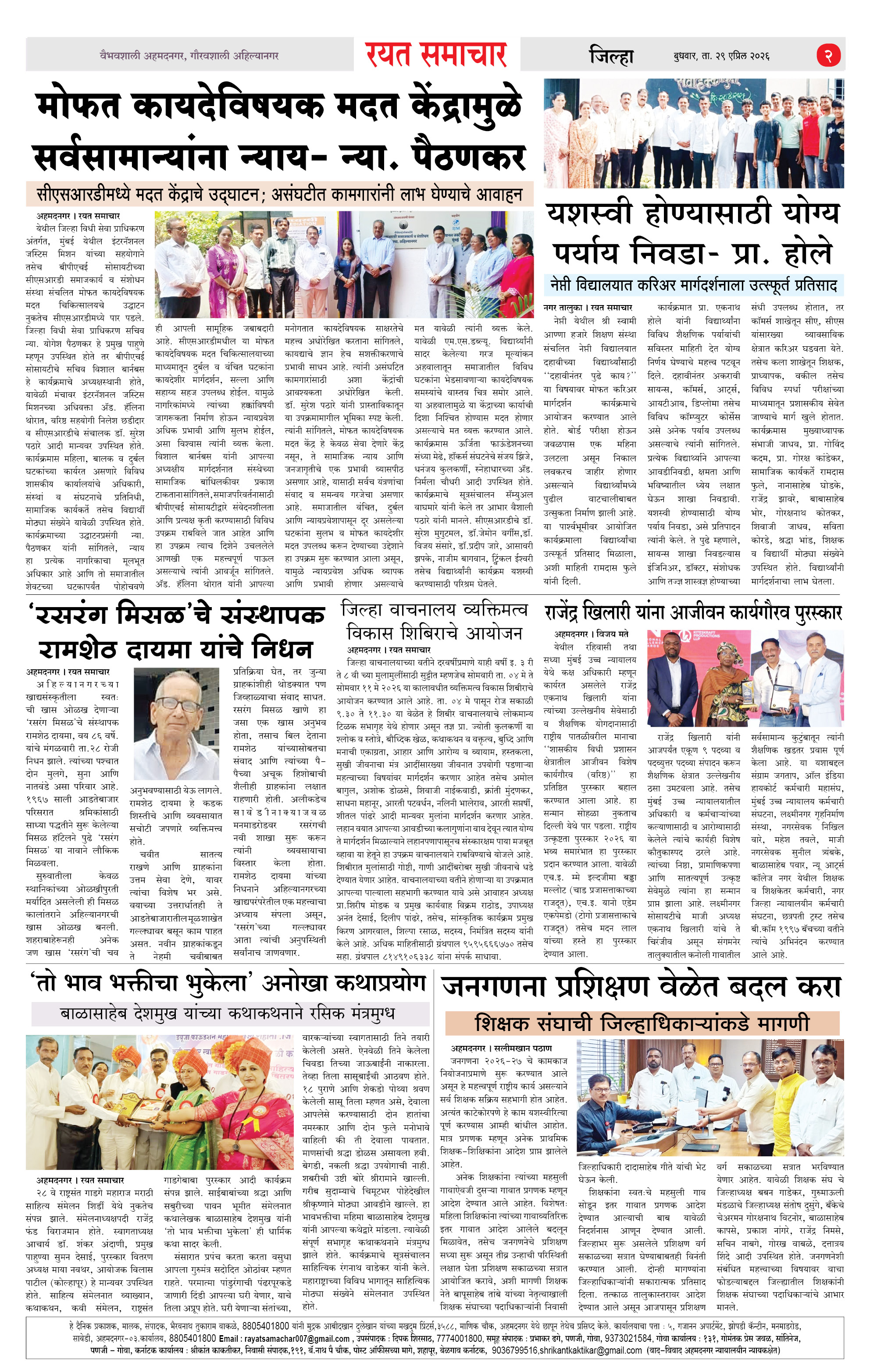 RSE: आजचा रयत समाचार वाचा 29 April 2026 मनोरंजनासह प्रबोधनासाठी.. Page: 2 April 29, 2026 << First << 1 2 3 4 >> Last >> Page 1Page 2Page 3Page 4 × RSE: आजचा रयत समाचार वाचा 29 April 2026 मनोरंजनासह प्रबोधनासाठी.. 1_MAIN PAGE2_CITY PAGE3_DISTRICT_PAGE4_MAHARSHTRA_PAGE << First << 2 >> Last >> 1_MAIN PAGE2_CITY PAGE3_DISTRICT_PAGE4_MAHARSHTRA_PAGE