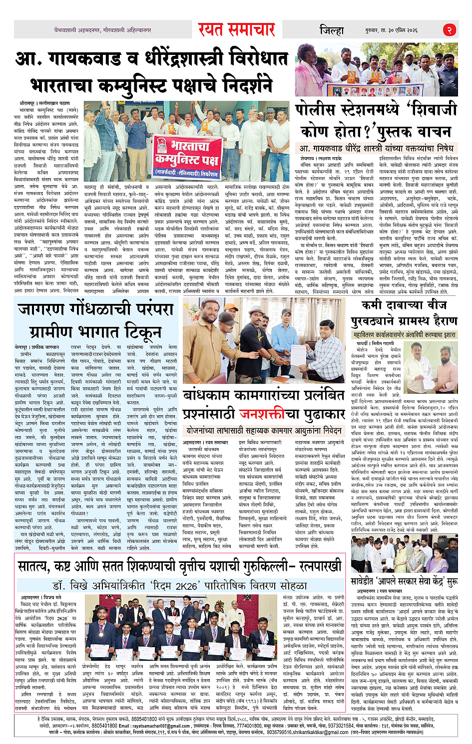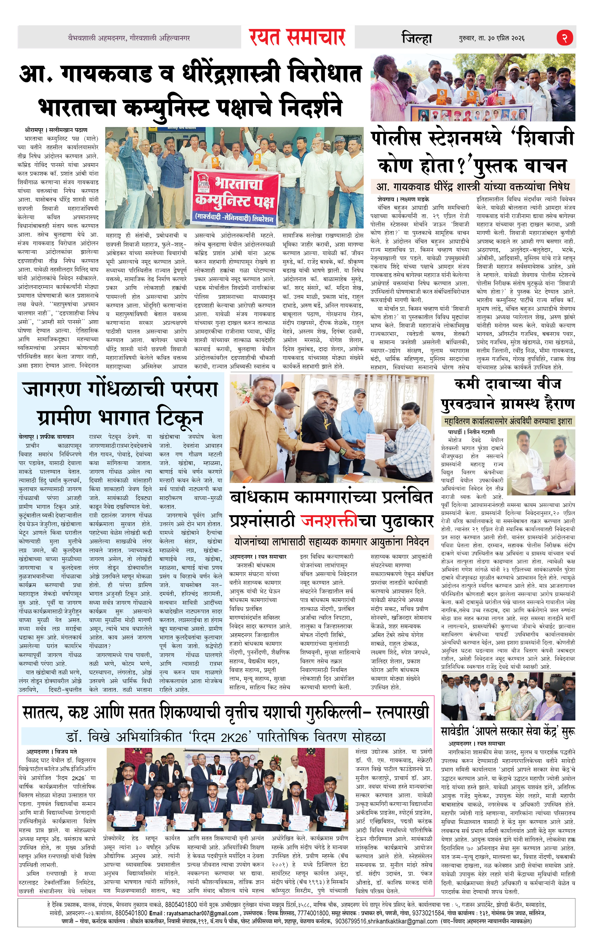 RSE: आजचा रयत समाचार वाचा 30 April 2026 मनोरंजनासह प्रबोधनासाठी.. Page: 2 April 30, 2026 << First << 1 2 3 4 >> Last >> Page 1Page 2Page 3Page 4 × RSE: आजचा रयत समाचार वाचा 30 April 2026 मनोरंजनासह प्रबोधनासाठी.. 1_MAIN PAGE2_CITY PAGE3_DISTRICT_PAGE4_MAHARSHTRA_PAGE << First << 2 >> Last >> 1_MAIN PAGE2_CITY PAGE3_DISTRICT_PAGE4_MAHARSHTRA_PAGE